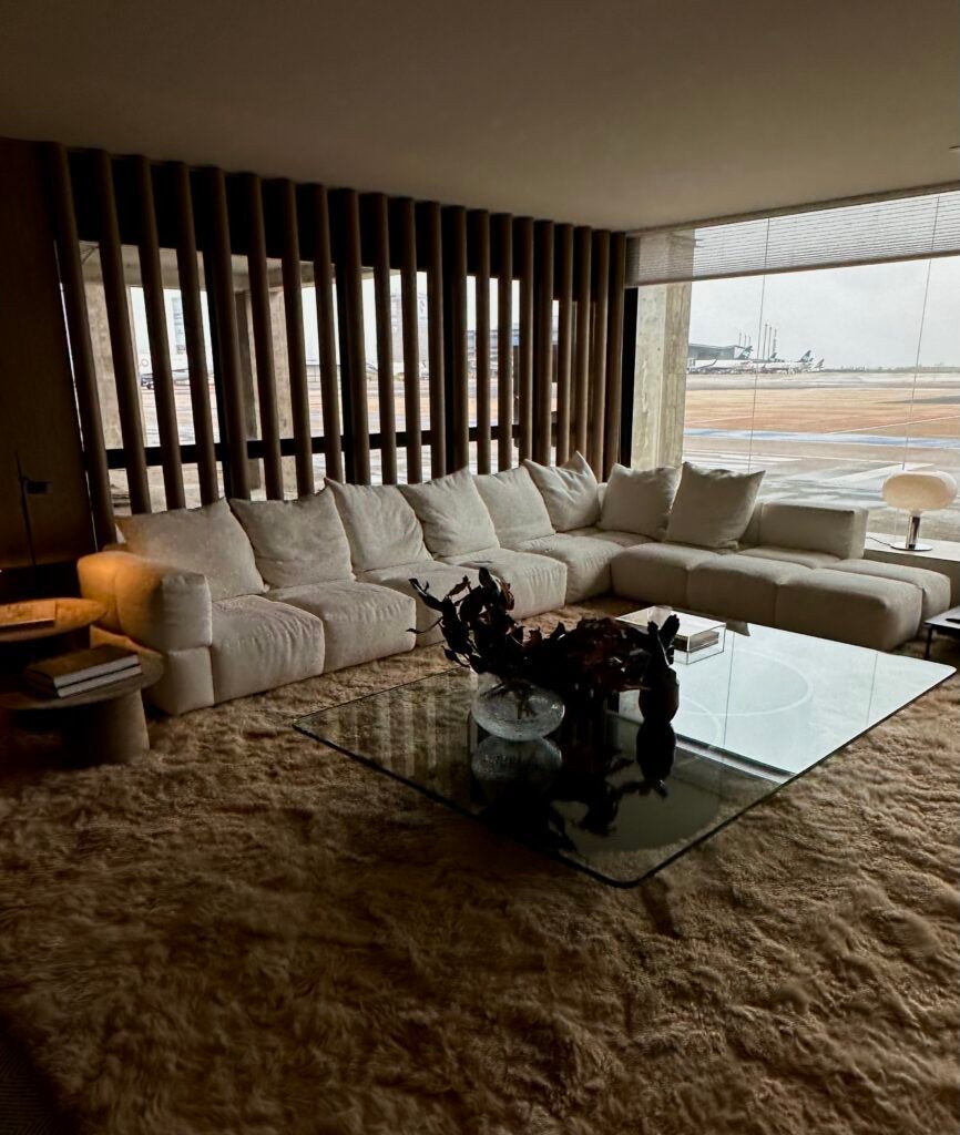 O ambiente Nosso Hangar se destaca como um espaço de respiro. Inspirado nos antigos hangares, o projeto ressignifica a ideia de abrigo: sai do técnico e funcional e ganha contornos afetivos e contemporâneos.
