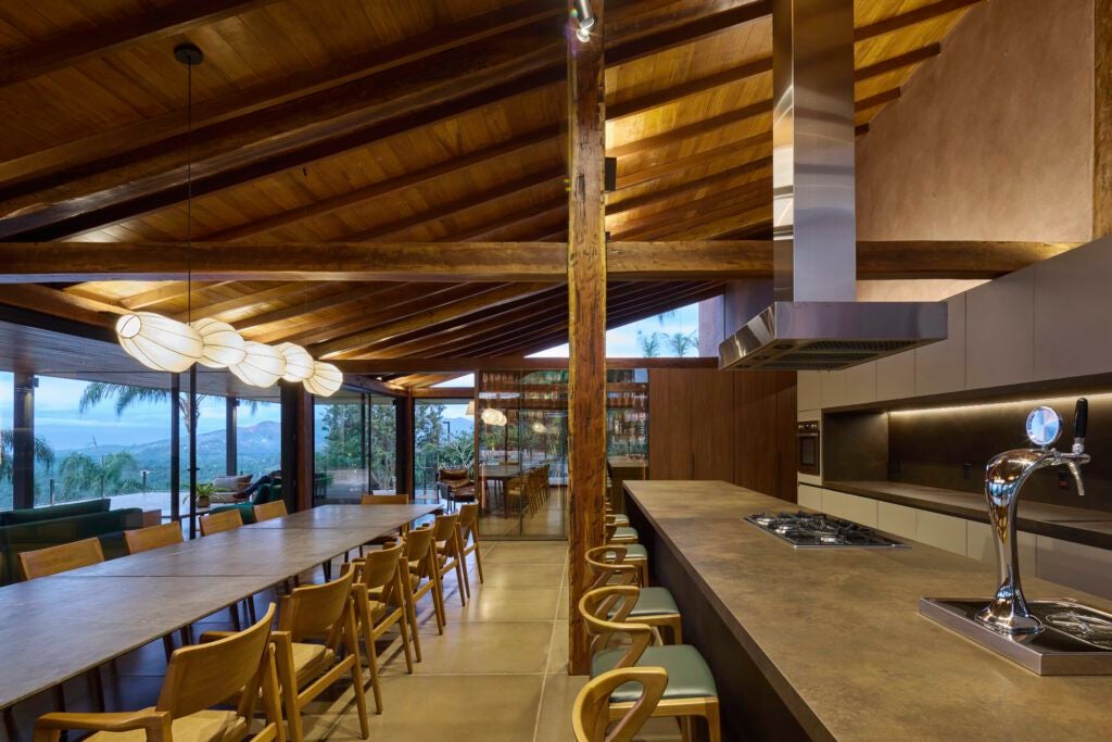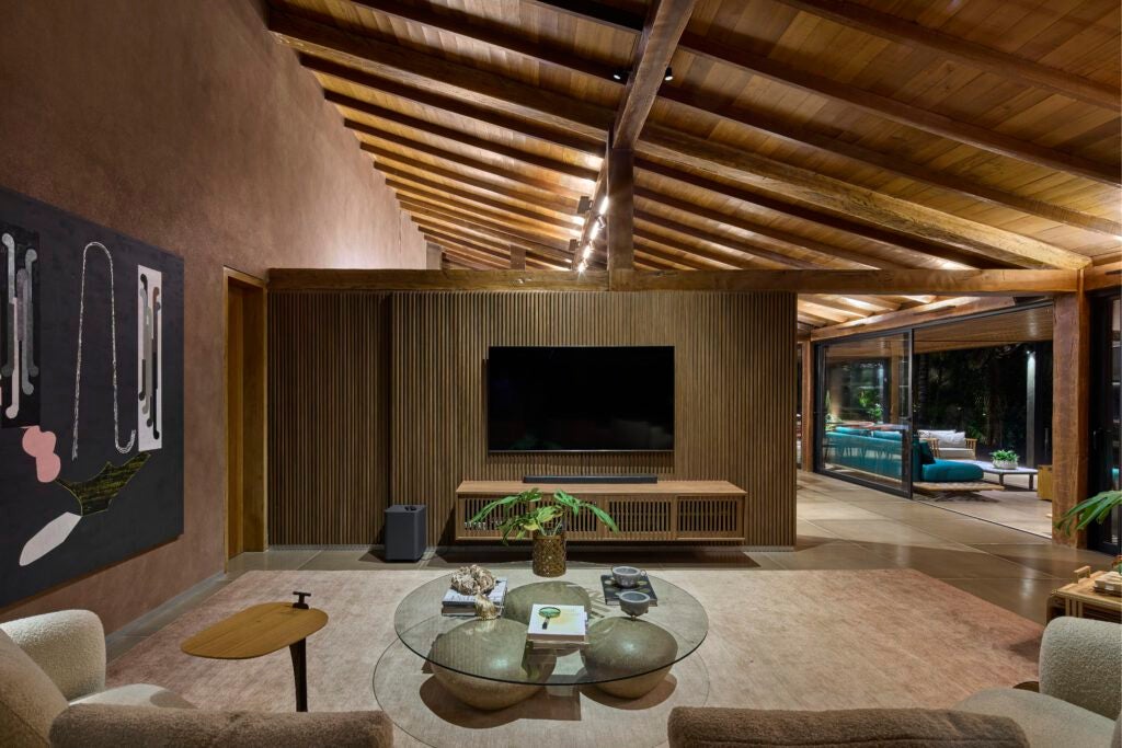 Implantada em meio à Mata Atlântica, no Condomínio Parque do Engenho, em Macacos (MG), a Casa São Sebastião carrega mais de 30 anos de história. Construída quando o proprietário ainda era solteiro, atravessou diferentes fases até chegar à mais ampla transformação: uma ampliação de 500 m², concebida pelo escritório David Guerra Arquitetura e Interiores, para acompanhar a nova rotina da família e o desejo de receber amigos em um espaço generoso e conectado à paisagem.