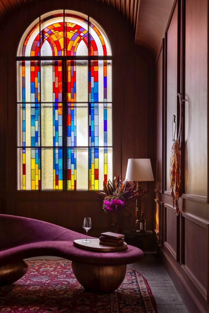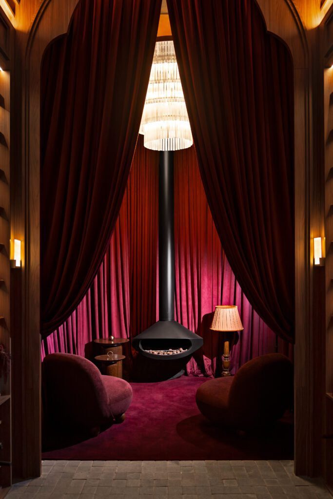 O ambiente é envolto por uma penumbra acolhedora que convida à introspecção. O mobiliário foi escolhido com rigor artesanal, destacando texturas naturais, curvas orgânicas e superfícies que contam histórias. É, como o próprio autor define, um altar ao tempo e à identidade.