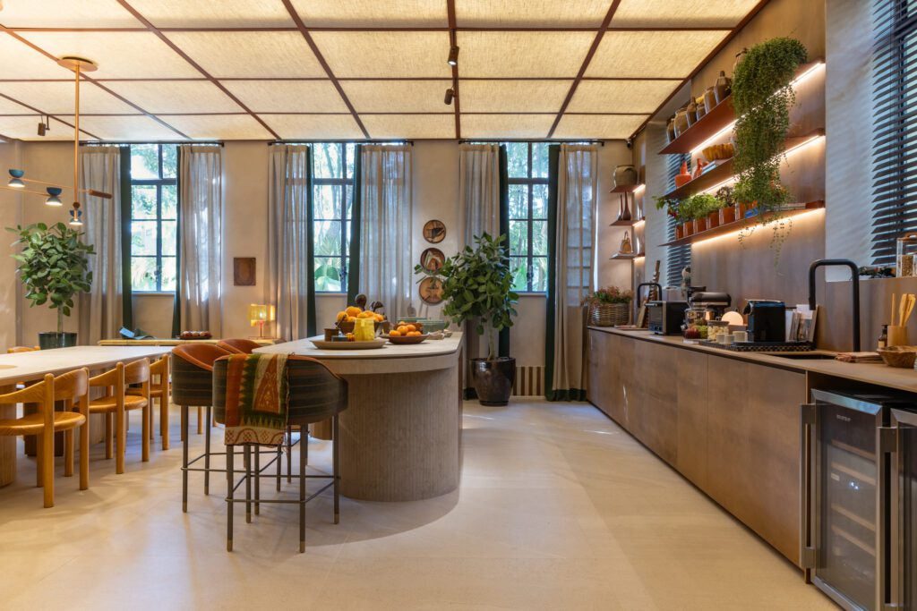 Inspirado no modernismo dos anos 70 e na casa como refúgio emocional e físico, o projeto valoriza o encontro entre tecnologia e afeto, ancestralidade e contemporaneidade