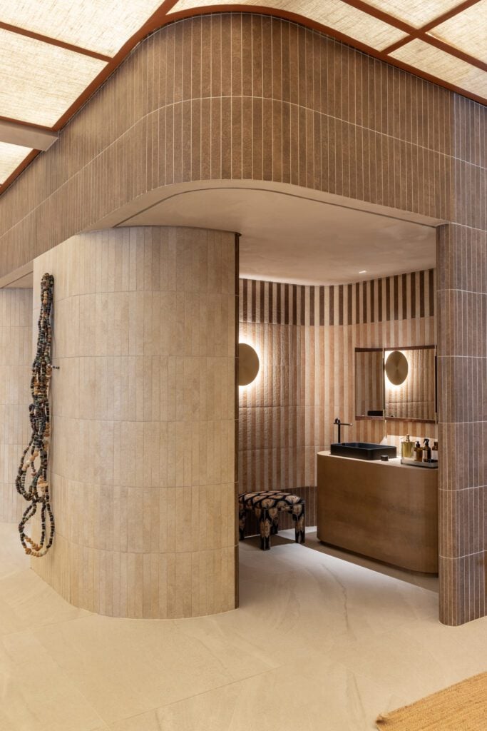 Com 225m², o ambiente assinado por Marina Linhares para a Portinari propõe uma experiência sensorial sofisticada, onde matéria, memória e sentidos se entrelaçam.