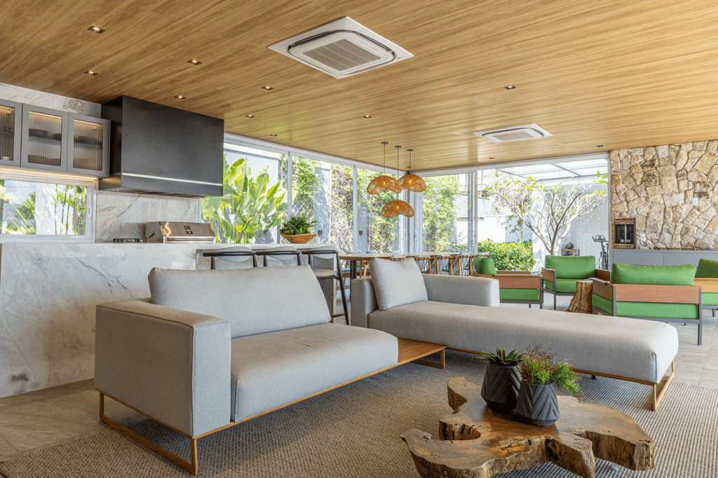 Os espaços abertos aproveitam ao máximo a luz natural e a ventilação cruzada.