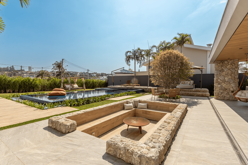 O firepit garante um clima acolhedor para os encontros externos.
