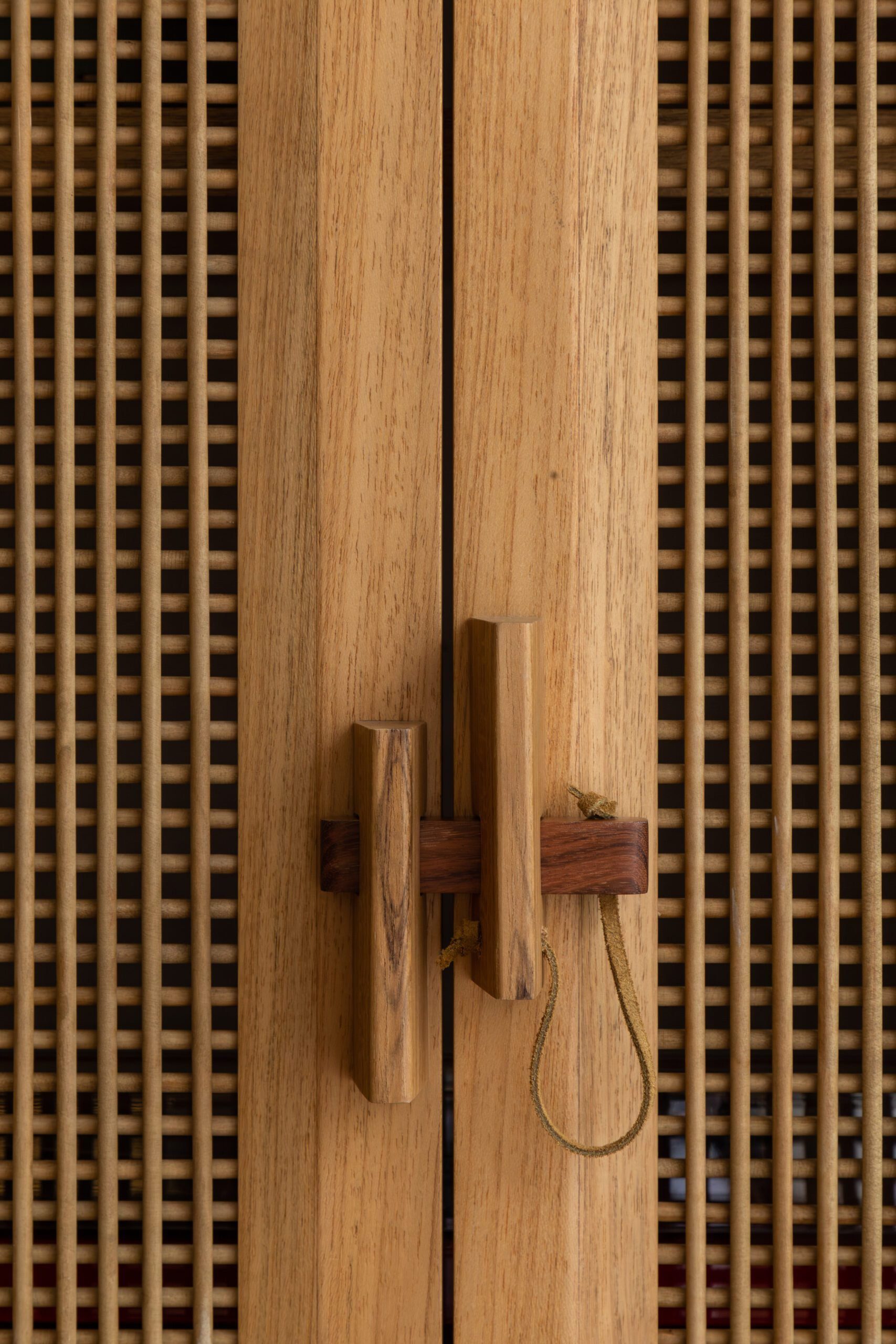 De madeira freijó, o móvel foi pensado para completar o ambiente, mas pode ter diversas finalidades, segundo ela. “É muito legal colocar um móvel de minha autoria em meu loft na CASACOR. Às vezes, para compor exatamente o que precisamos para um projeto, necessitamos ir além daquilo que já existe no mercado”, afirma.