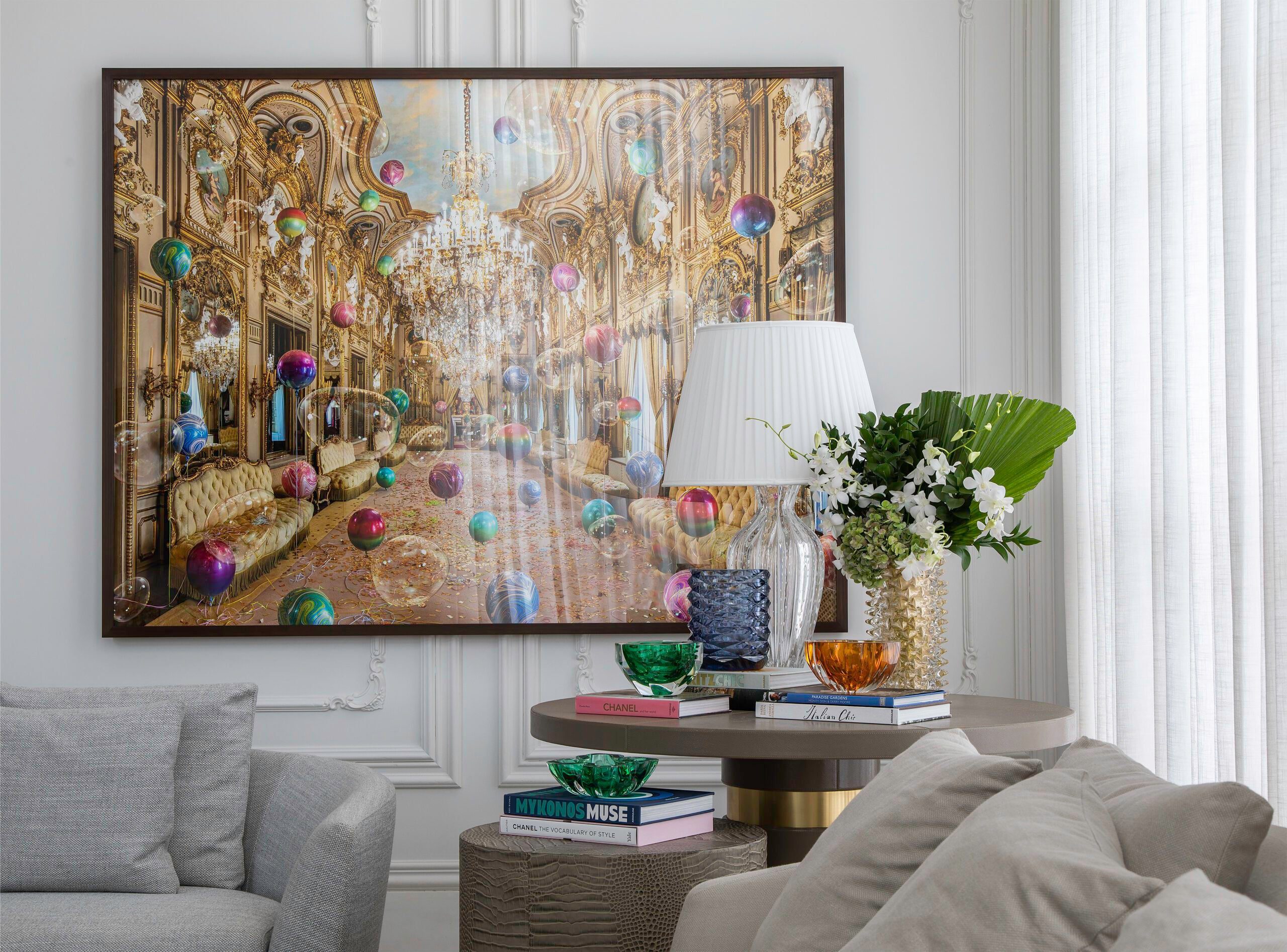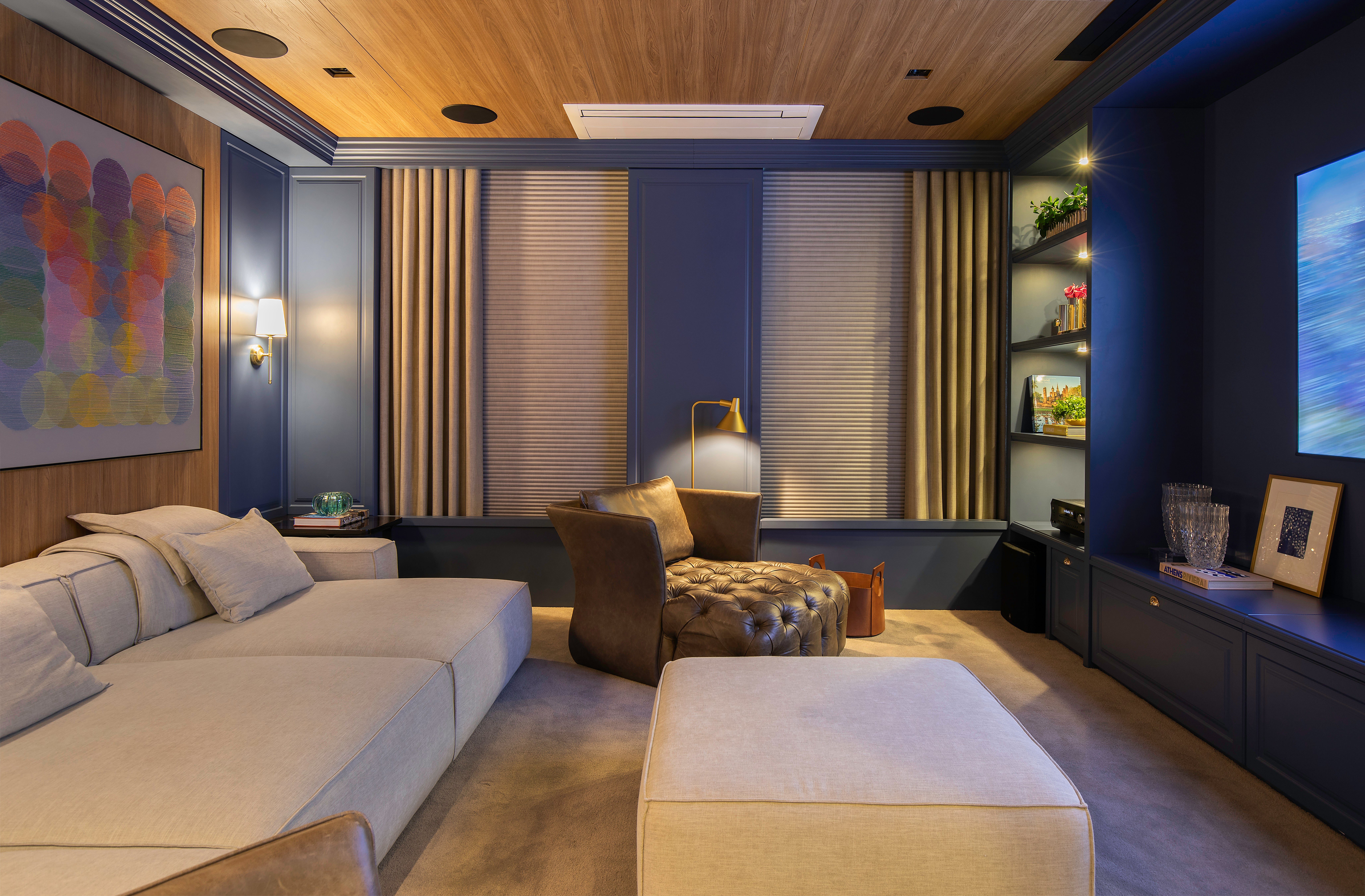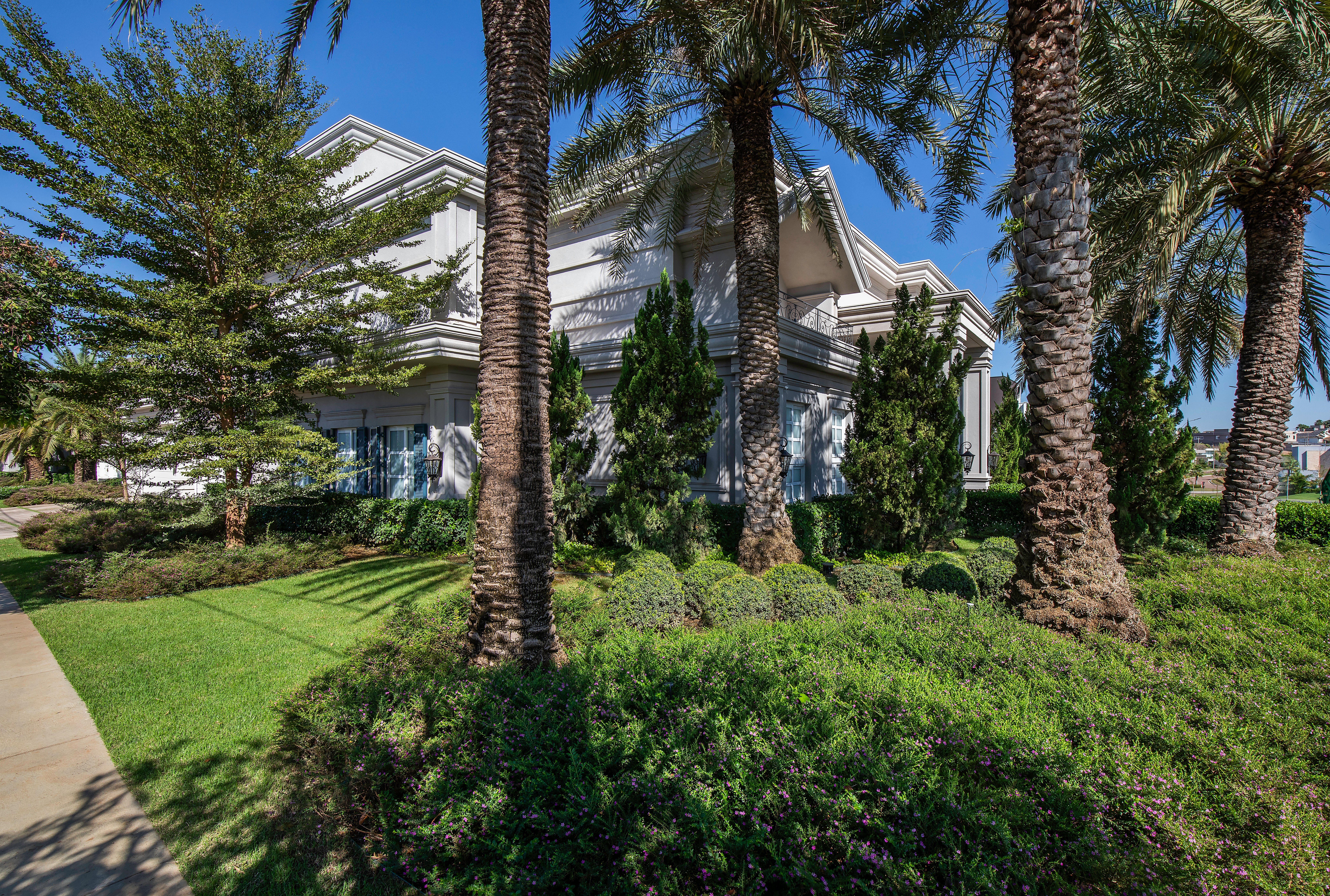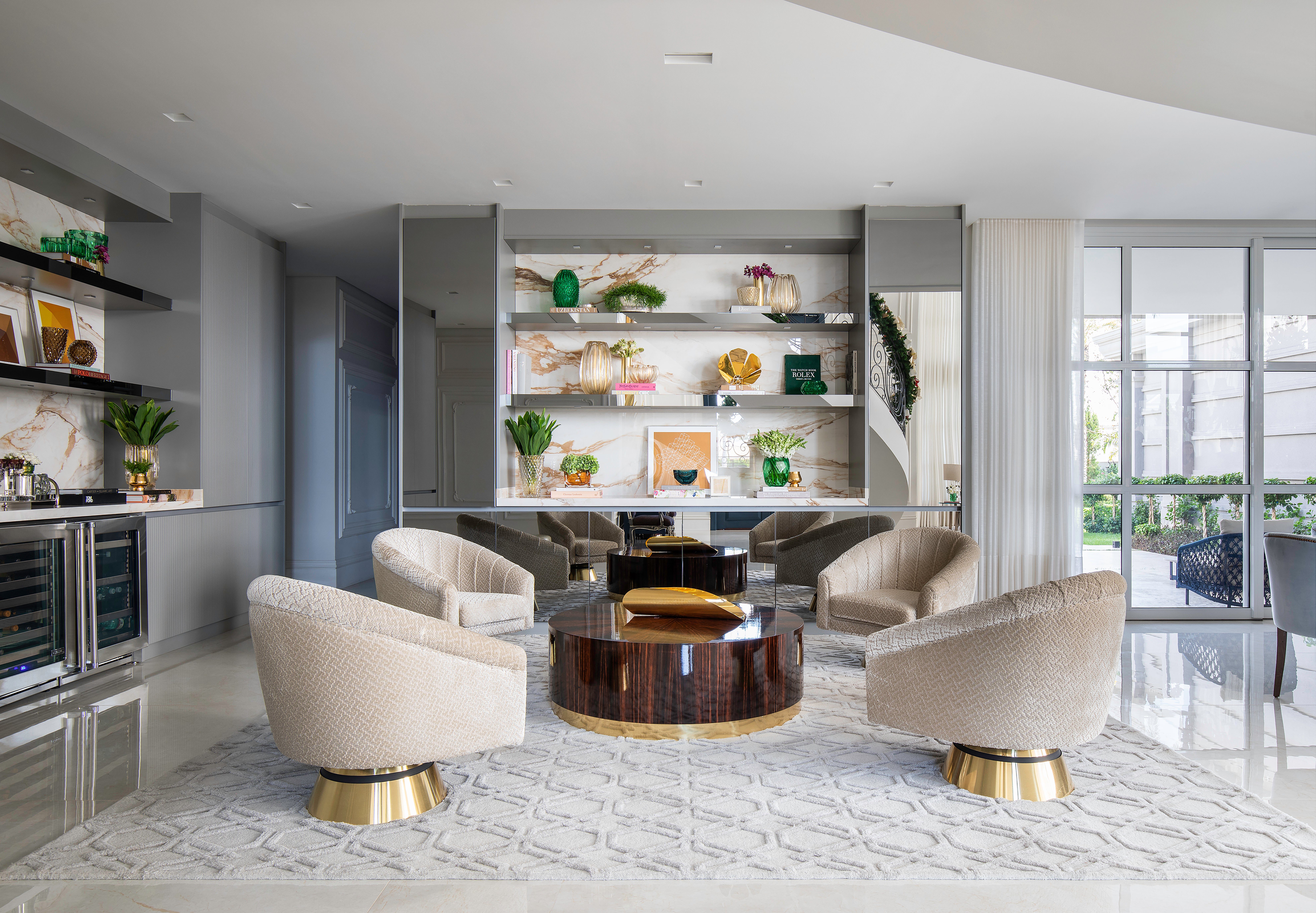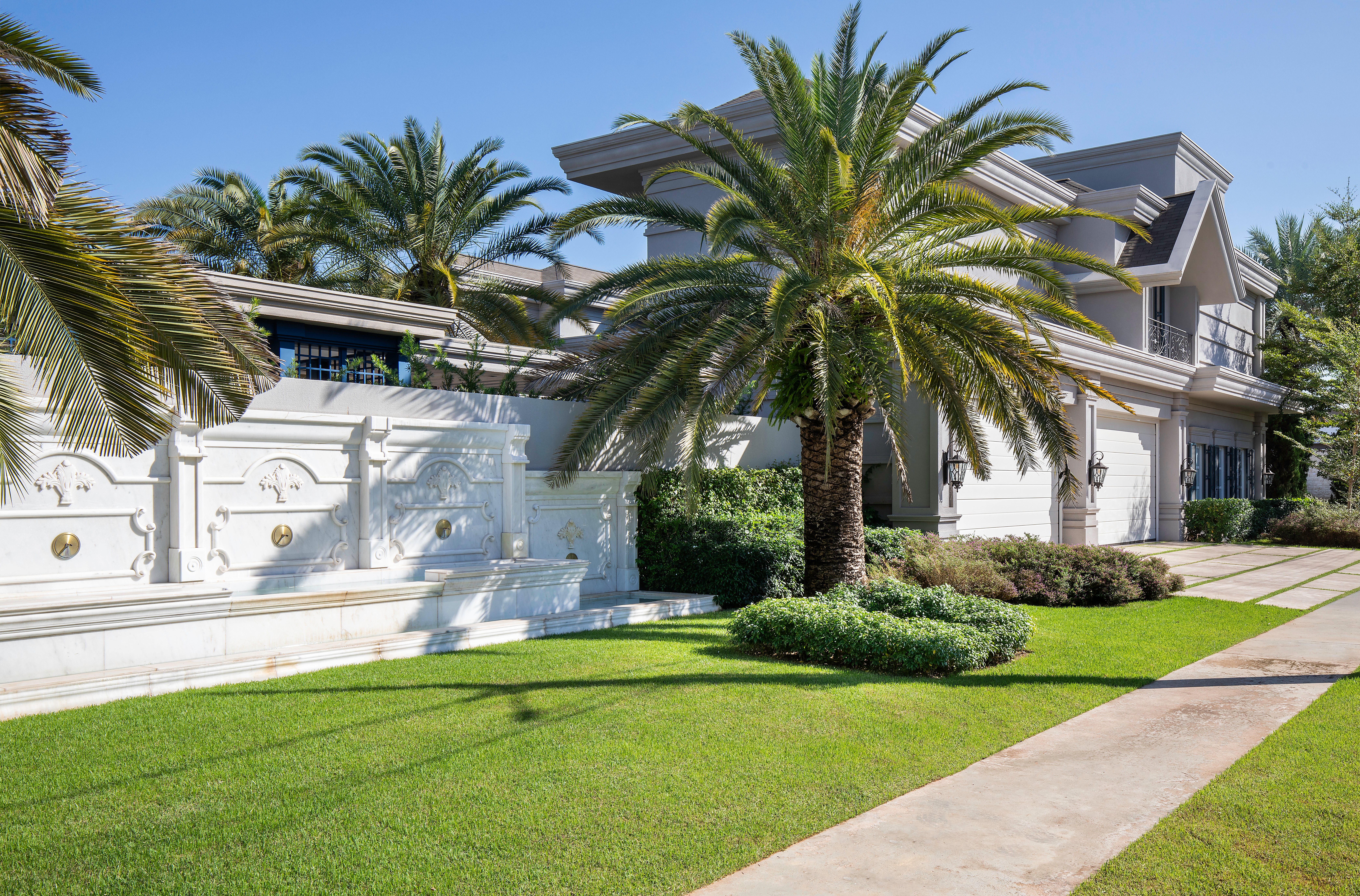 Misturando referências do clássico europeu ao frescor do moderno, a arquitetura revela fachadas ricamente detalhadas, enquanto os interiores apostam em uma elegância atemporal. O décor combina mobiliário nacional e importado, uma variedade de texturas em tapetes, tecidos e cortinas, nuances de azul e obras de arte contemporâneas, como a tela de Flávia Junqueira no living. É esse conjunto que compõe o estilo que a arquiteta Ilana Santiago define como um “clássico rejuvenescido, despretensioso”.