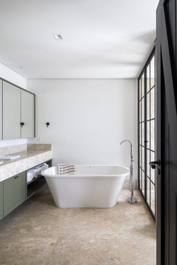 O projeto de interiores, também assinado por Felipe Diniz, segue a mesma linguagem arquitetônica, com elementos naturais e tons neutros.