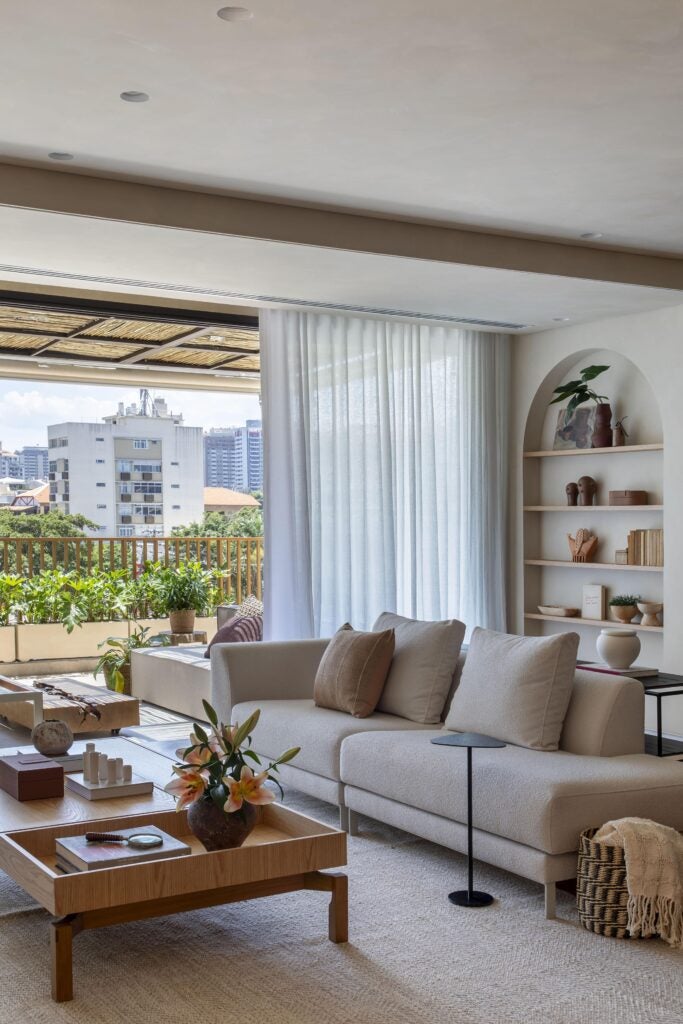 A cobertura duplex de 400 m² na Barra da Tijuca foi totalmente renovada para refletir a atmosfera leve e acolhedora desejada pelos moradores.