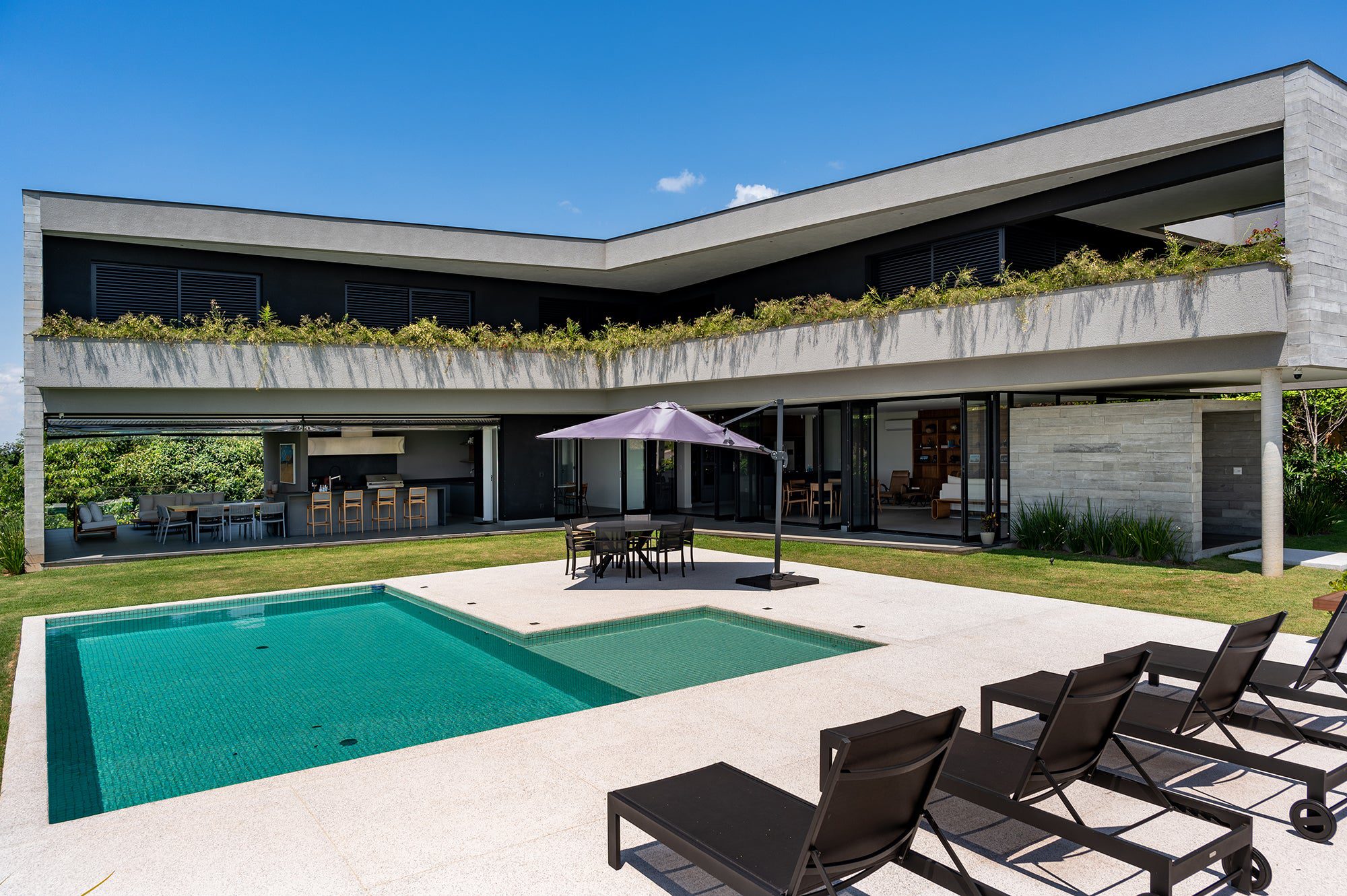 Projeto: Roberto de Pietro O terreno de 1.300 m² trouxe o desafio de equilibrar vista e privacidade. A implantação em L foi a solução para garantir conforto e resguardo visual. O paisagismo de Roberto Riscala […]