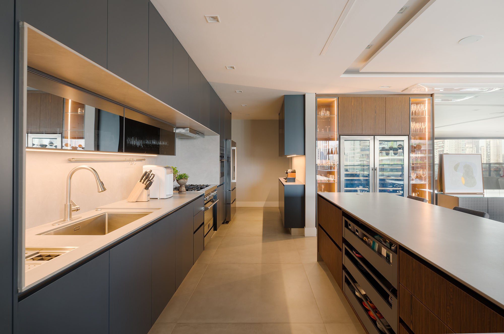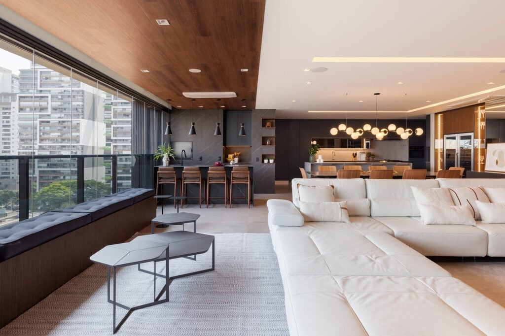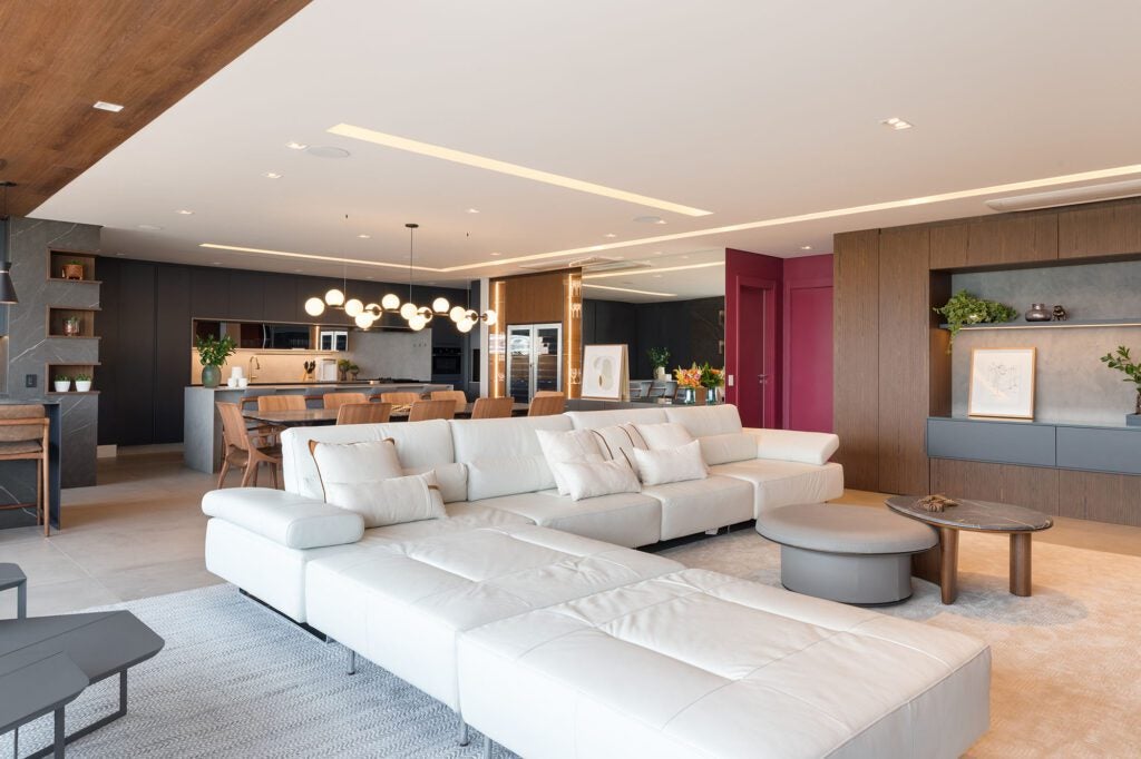 O projeto de interiores é marcado pela união entre sofisticação e funcionalidade.