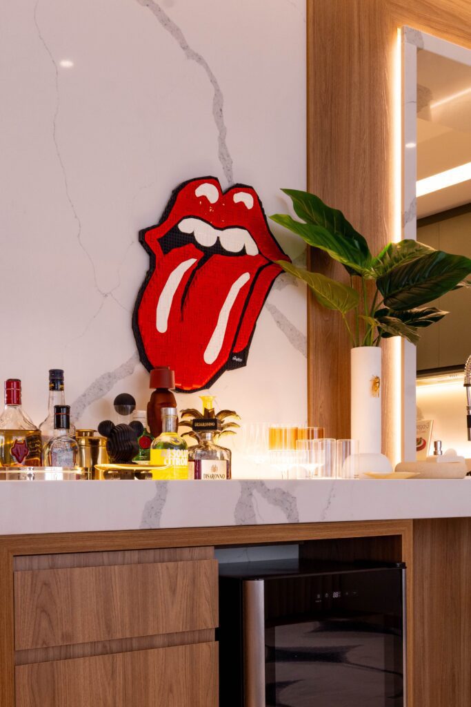 Na varanda, a obra da Center Art é o ponto de destaque.