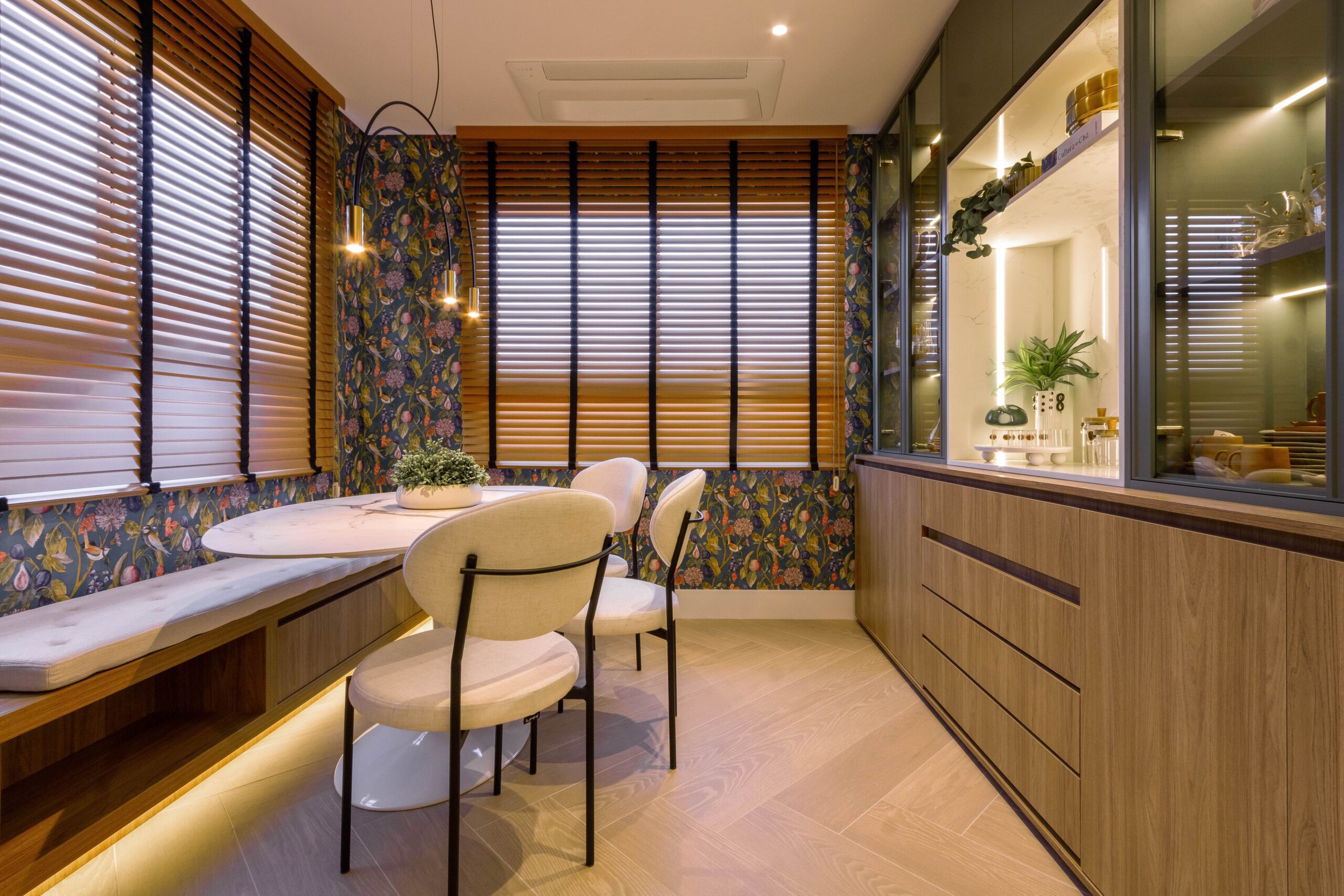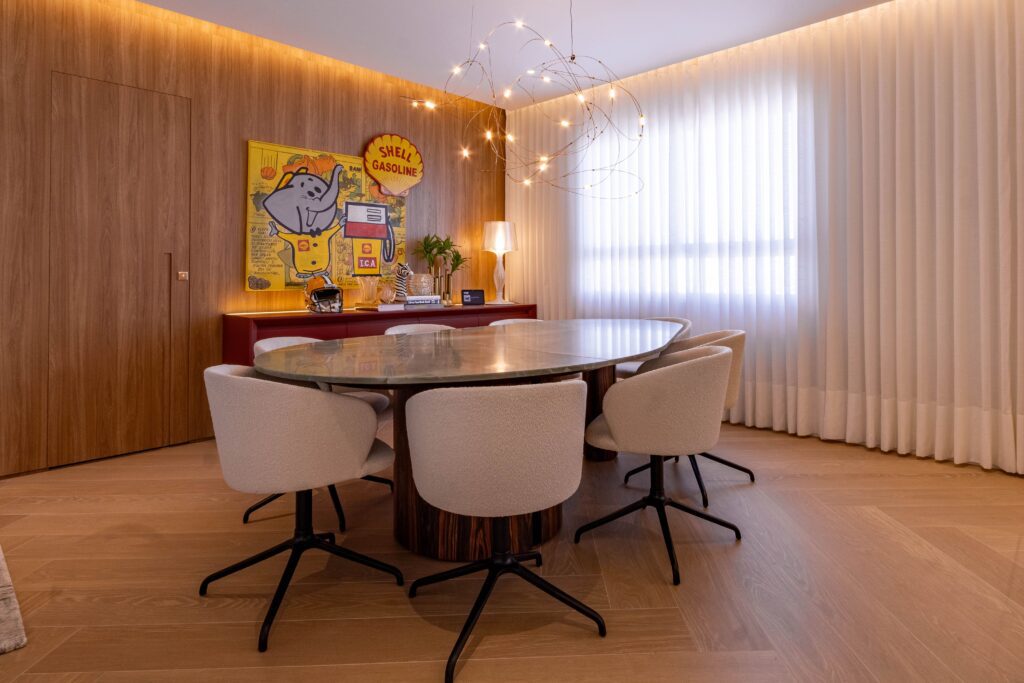 A sala de almoço foi pensada para unir praticidade e acolhimento no dia a dia.
