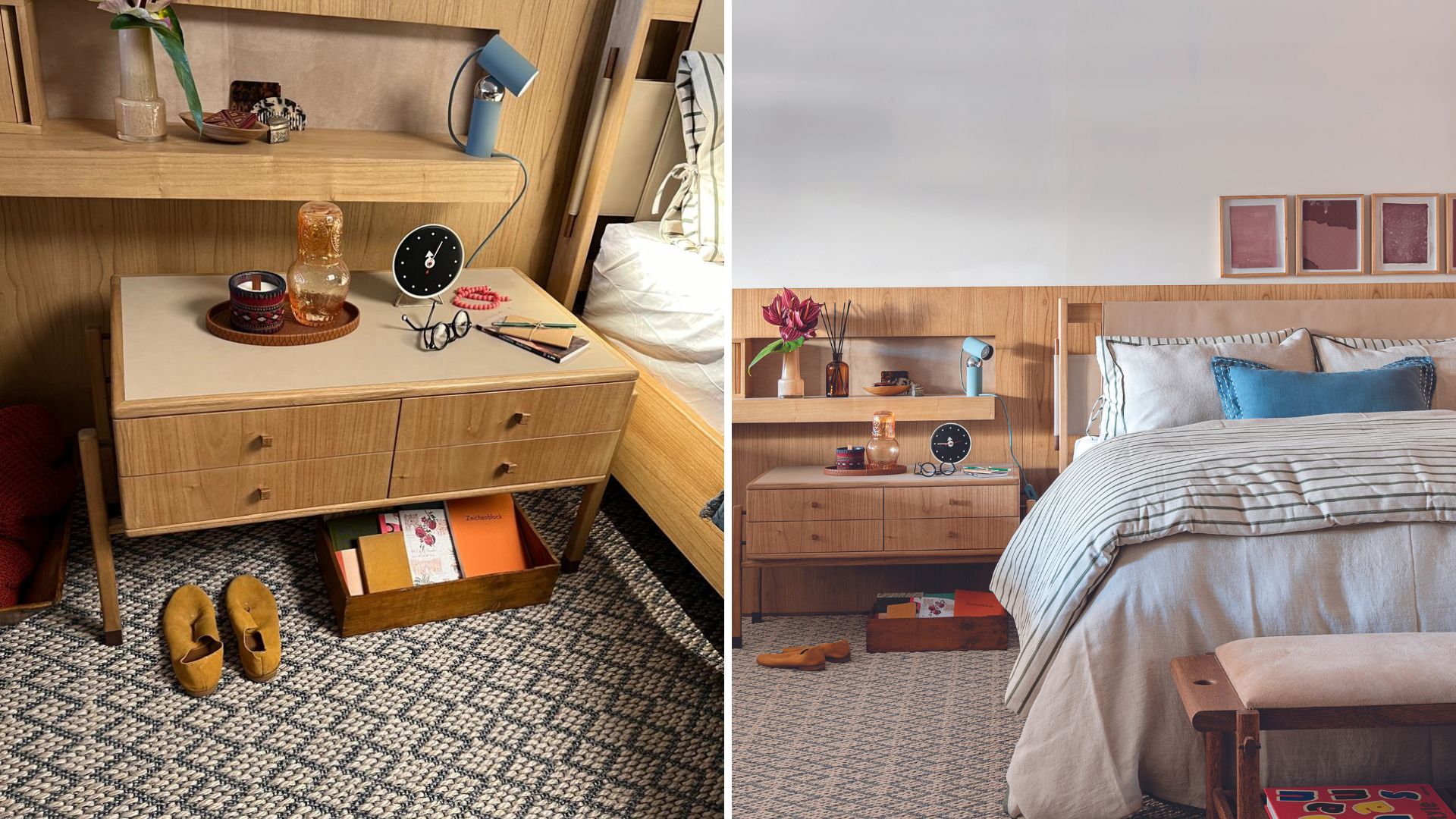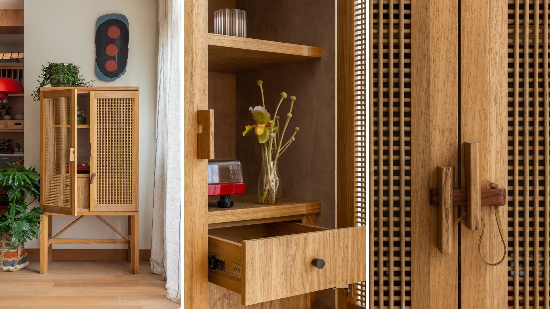 O espaço de Cacau abriga living, cozinha/copa, dormitório, canto para escritório, closet e banheiro. Batizado de “Nosso Próprio Tempo”, é um convite para viver e desfrutar do presente em meio às melhores memórias. “Fiz uma celebração do presente e um lembrete gentil para valorizarmos cada momento da vida”, explica Cacau. “Uma casa acolhedora guarda a história de quem vive ali, expõe coisas que fazem parte da história dos moradores.”