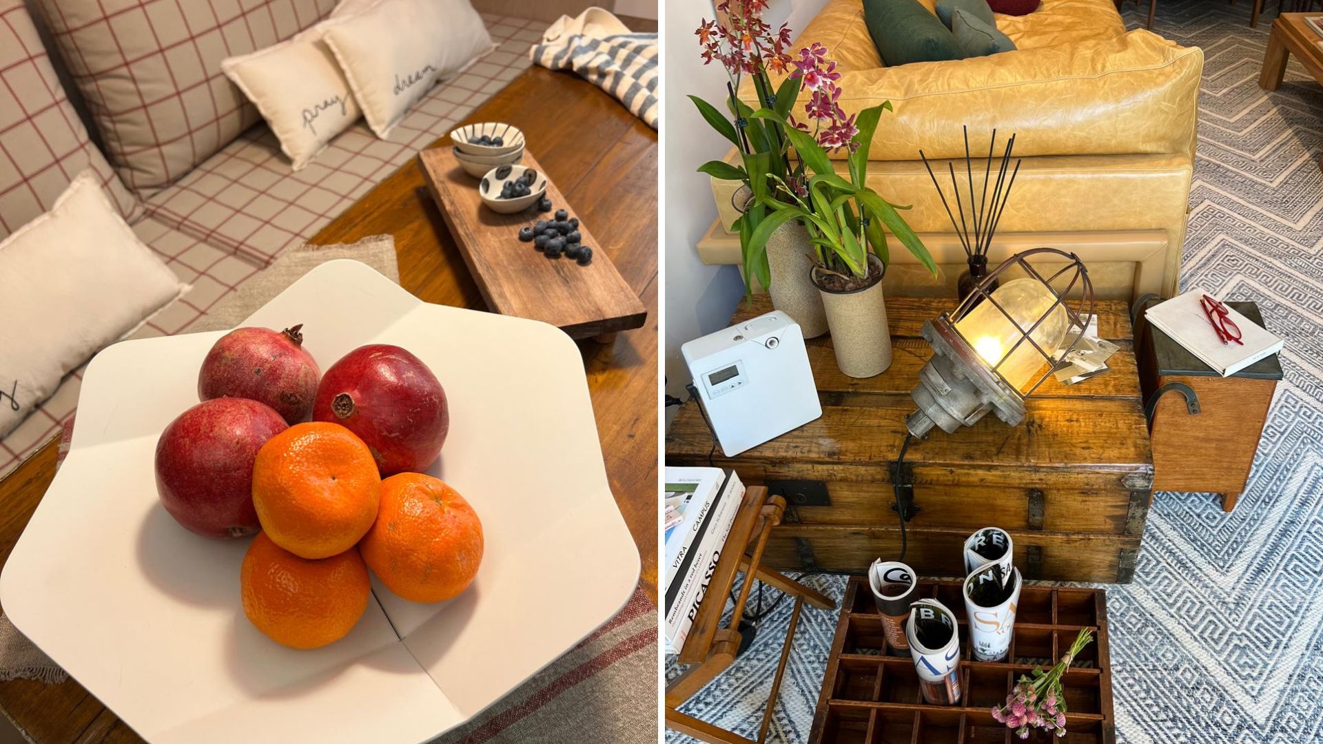 Esse exercício proposto por Cacau, além de resultar em espaços bonitos e gostosos, pode ser muito divertido. “Uma dica é pegar aqueles vidrinhos de leite de coco, que estão na cozinha, tirar os rótulos e transformá-los em vasinhos”, sugere. “Às vezes, temos em casa cestos, caixinhas… Sabe aquelas caixas de vinho com coisas escritas? Você pode empilhá-las na bancada da cozinha e colocar em cima potes com cereais, por exemplo.”