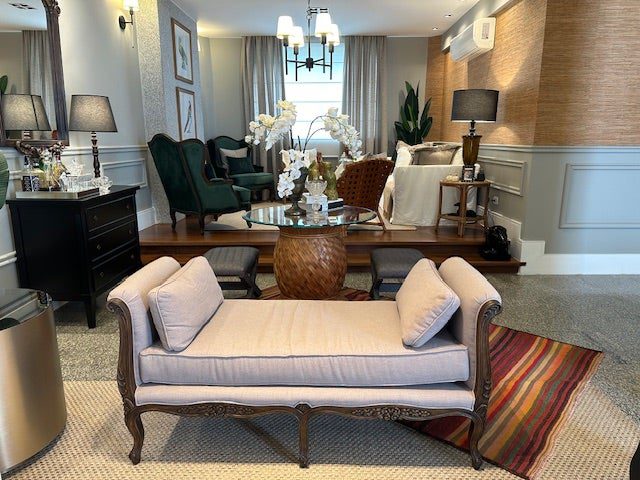 Mobiliário destaca o conforto e reforça o estilo clássico.