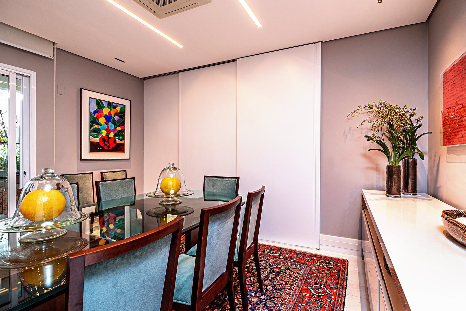 O projeto de interiores apostou em charme e conforto para transformar esta cobertura em um verdadeiro refúgio com vista privilegiada.