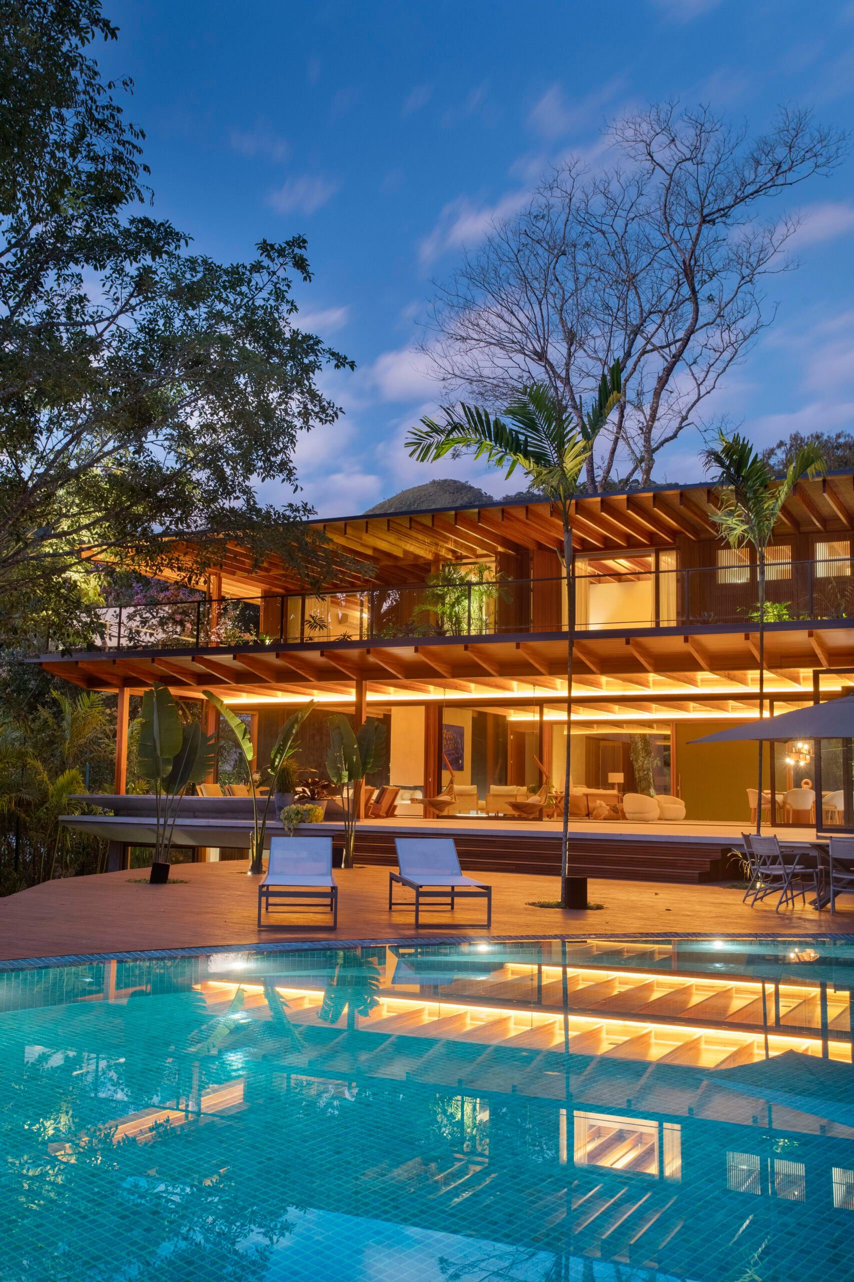 O escritório Consuelo Jorge Arquitetos explorou uma paleta de cores neutras, aquecida pela madeira, pelo couro e por tons sofisticados como grafite, mostarda e terracota. A madeira Freijó assume o protagonismo, especialmente no hall e no lavabo, onde reveste paredes e tetos, criando uma atmosfera envolvente e elegante.