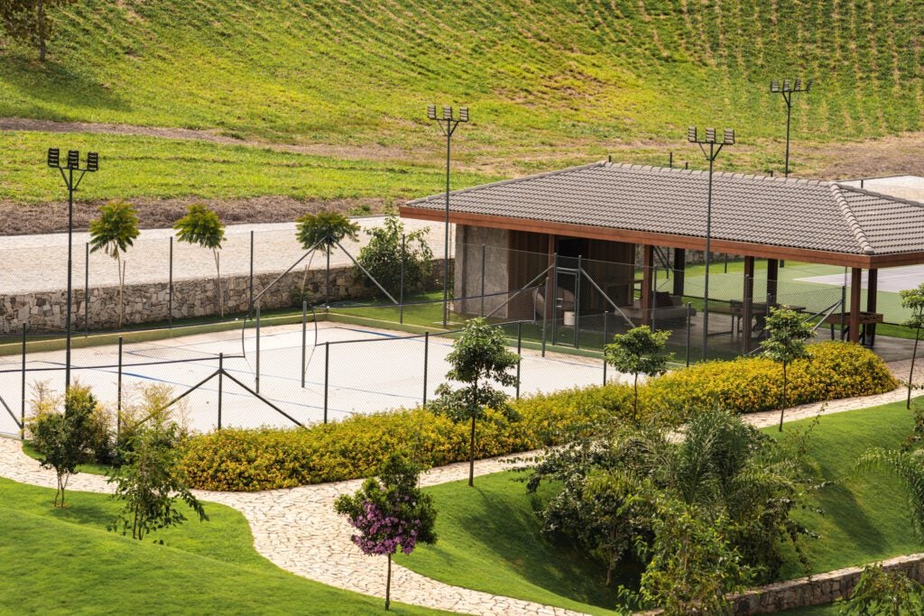 A paleta de cores do condomínio — tons de roxo, rosa, berinjela e lilás — foi traduzida em espécies como manacá-de-cheiro, quaresmeira, bougainville, sete-léguas, manacá-da-serra, agapanto e, em menor escala, capim-do-Texas e hamamelis. A escolha privilegia plantas nativas, garantindo adaptação ao clima local e preservando a biodiversidade.