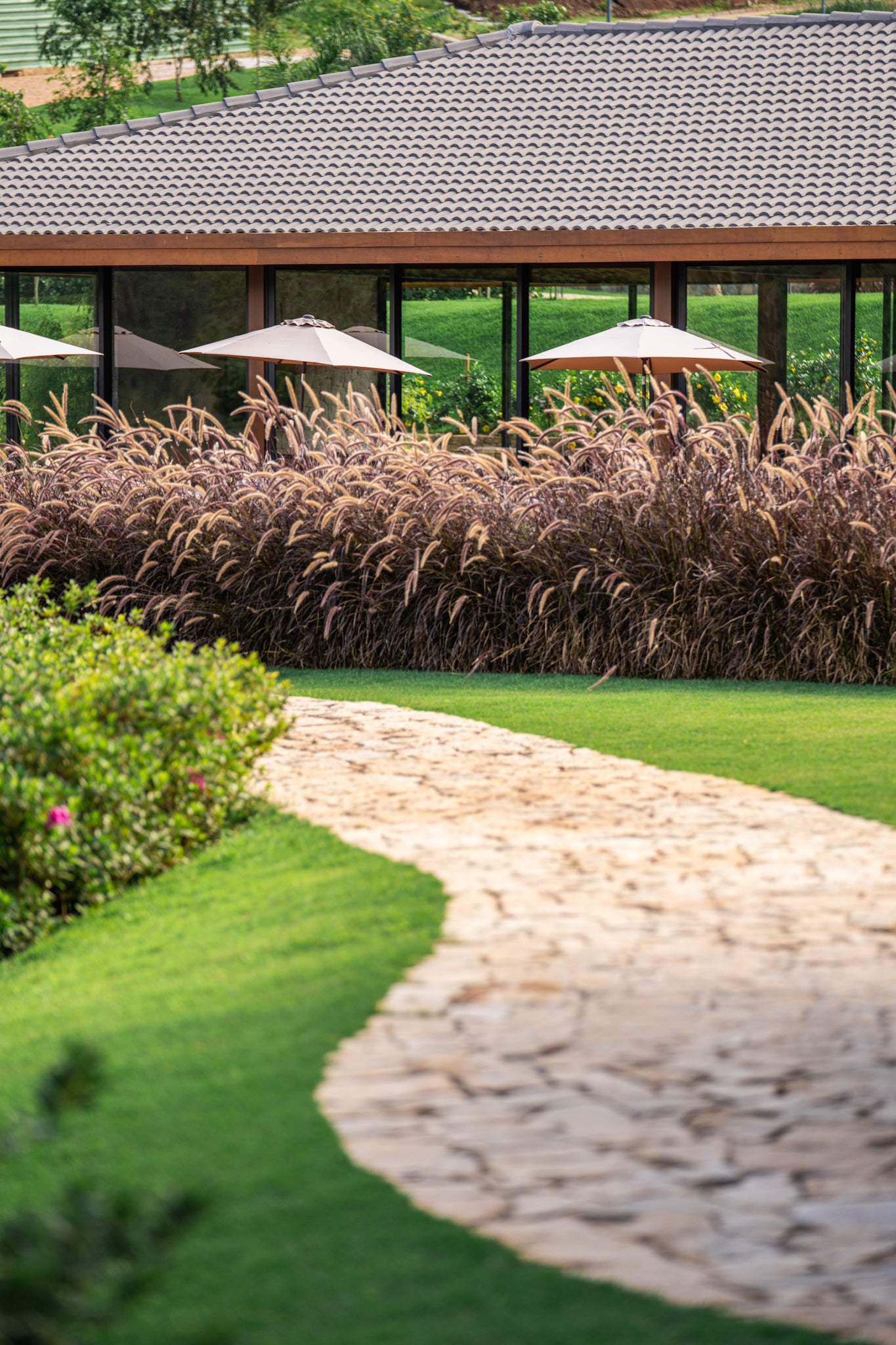 A fauna também encontrou seu espaço: as amoreiras próximas à sede atraem aves e até a seriema Amora, visitante ilustre do jardim. “É inspirador perceber que o espaço não é apenas contemplado, mas vivido”, celebra Ana Veras.
