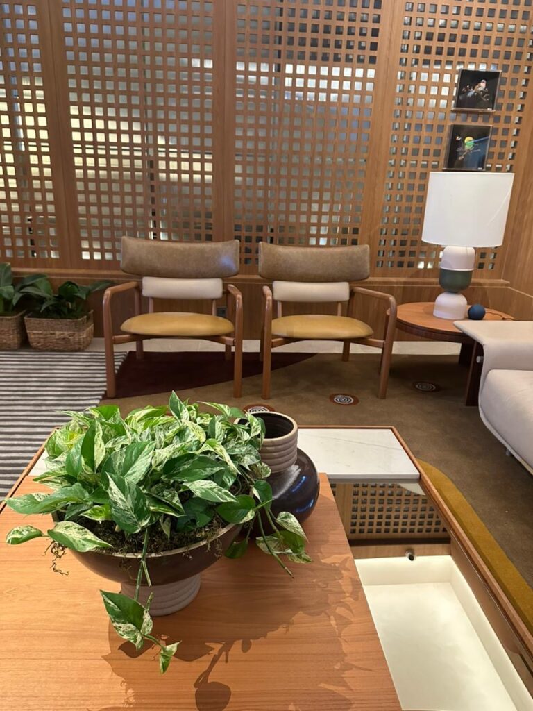 O Living Design é também sobre integração. Integração entre pessoas, entre o espaço e quem o habita, entre a arquitetura e a emoção. O ambiente acolhe encontros, mas também preserva momentos de introspecção. É um lugar onde as conversas acontecem sem pressa, onde o tempo parece se alongar, onde memórias podem ser criadas e guardadas. Paola traduz em sua linguagem uma forma de morar que é contemporânea, mas que nunca abandona a sensibilidade.