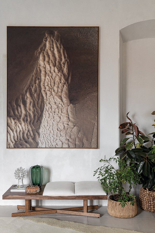 A iluminação em camadas desempenha papel fundamental, ressaltando texturas, tramas artesanais e obras que compõem a atmosfera do projeto. O resultado é um cenário sensorial, em que os elementos se integram de forma harmônica para intensificar a sensação de acolhimento.