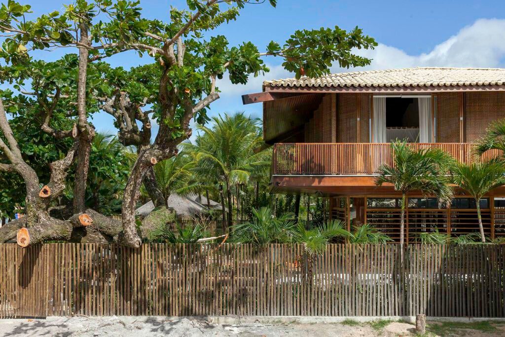 O projeto, assinado por David Bastos, integra a paisagem da Ilha de Tinharé com uma casa de praia ‘pé-na-areia’ de 362m².