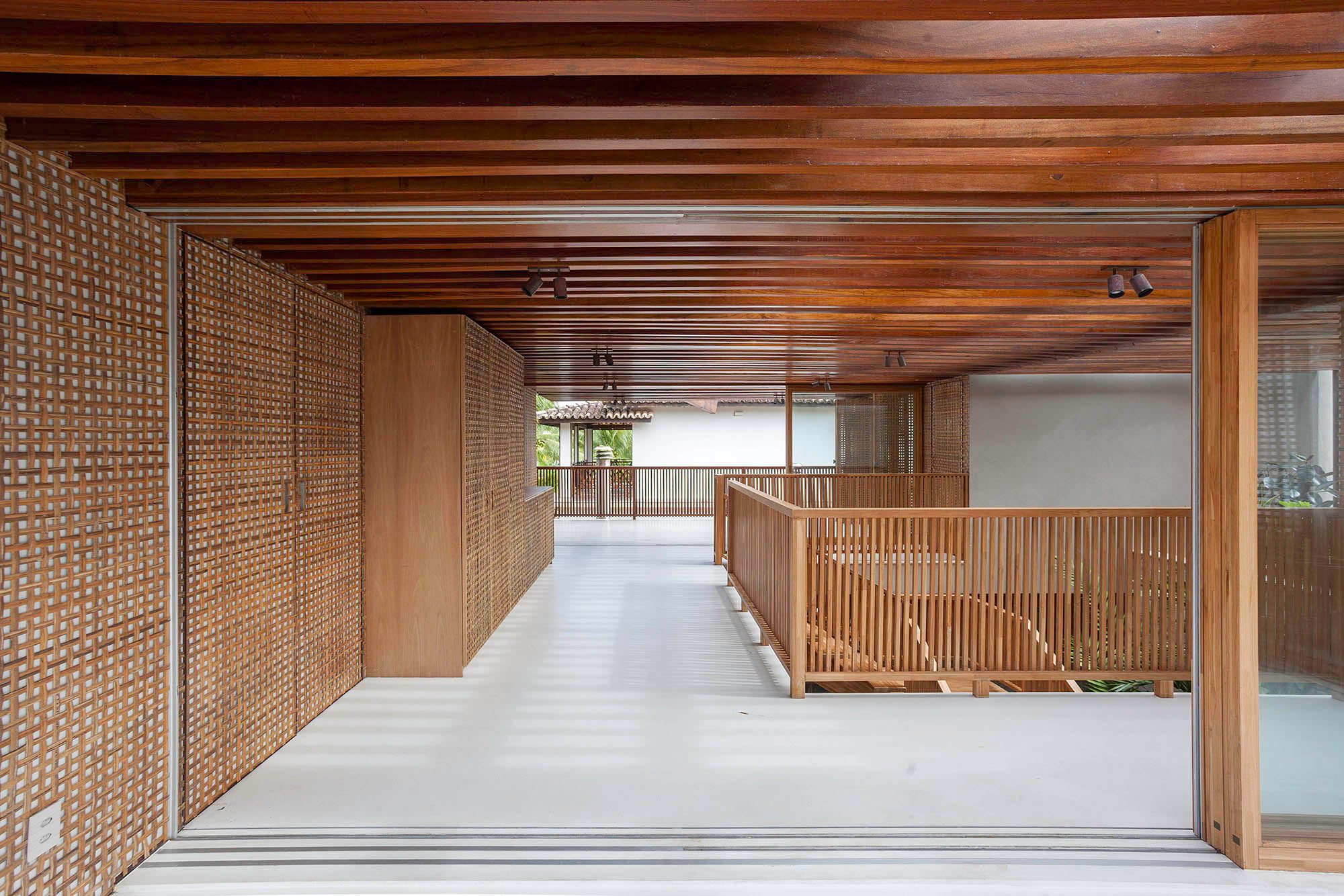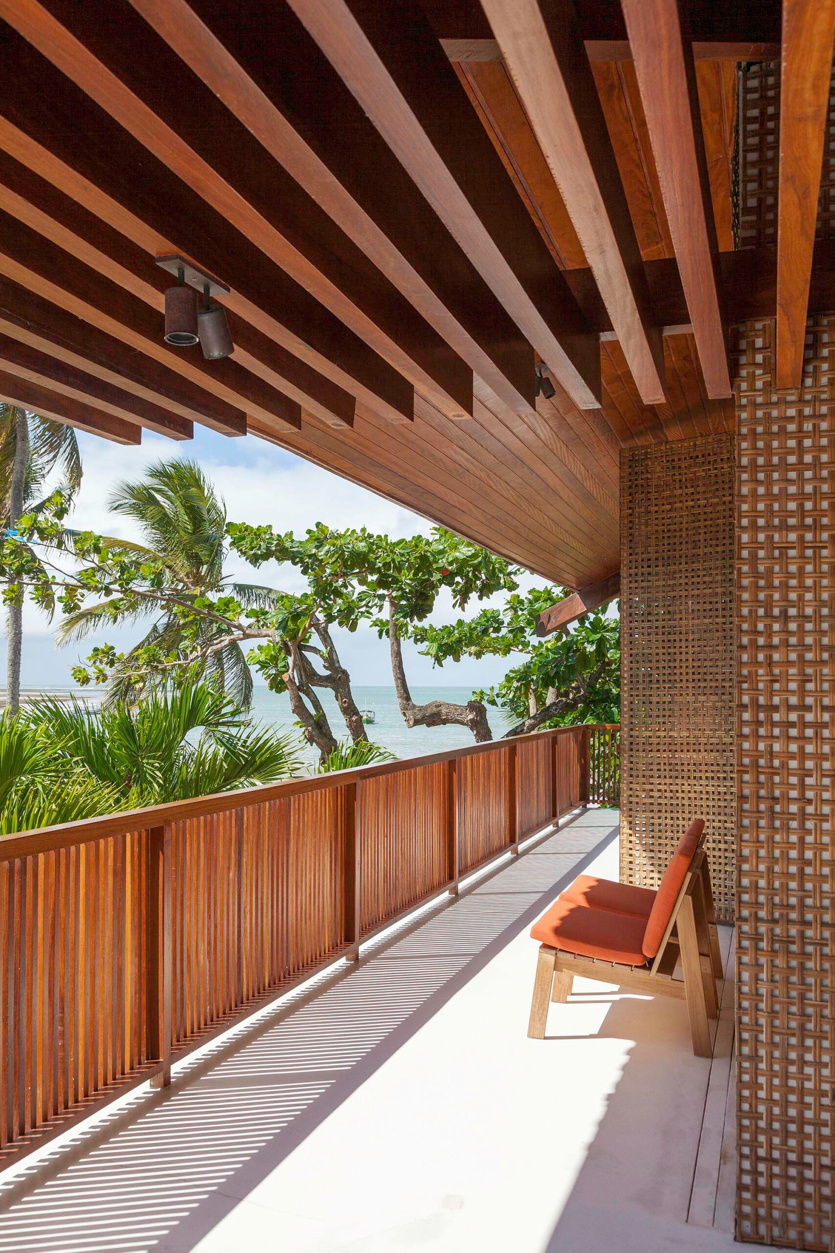 Varandas com forros em réguas de madeira ampliam o diálogo com o entorno.
