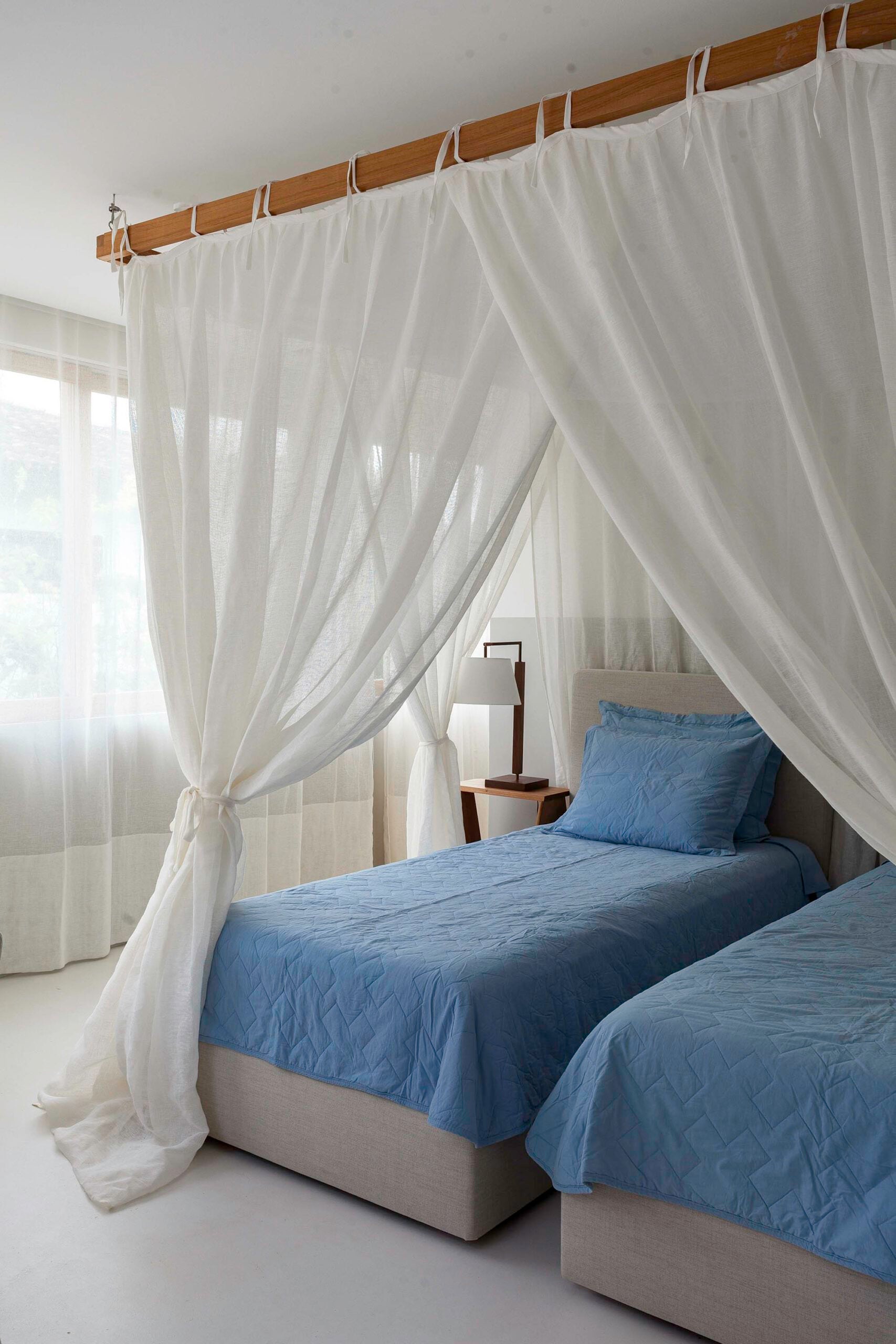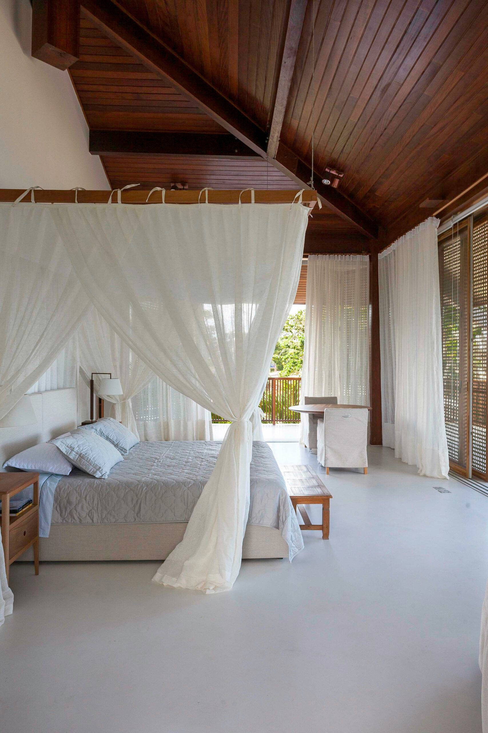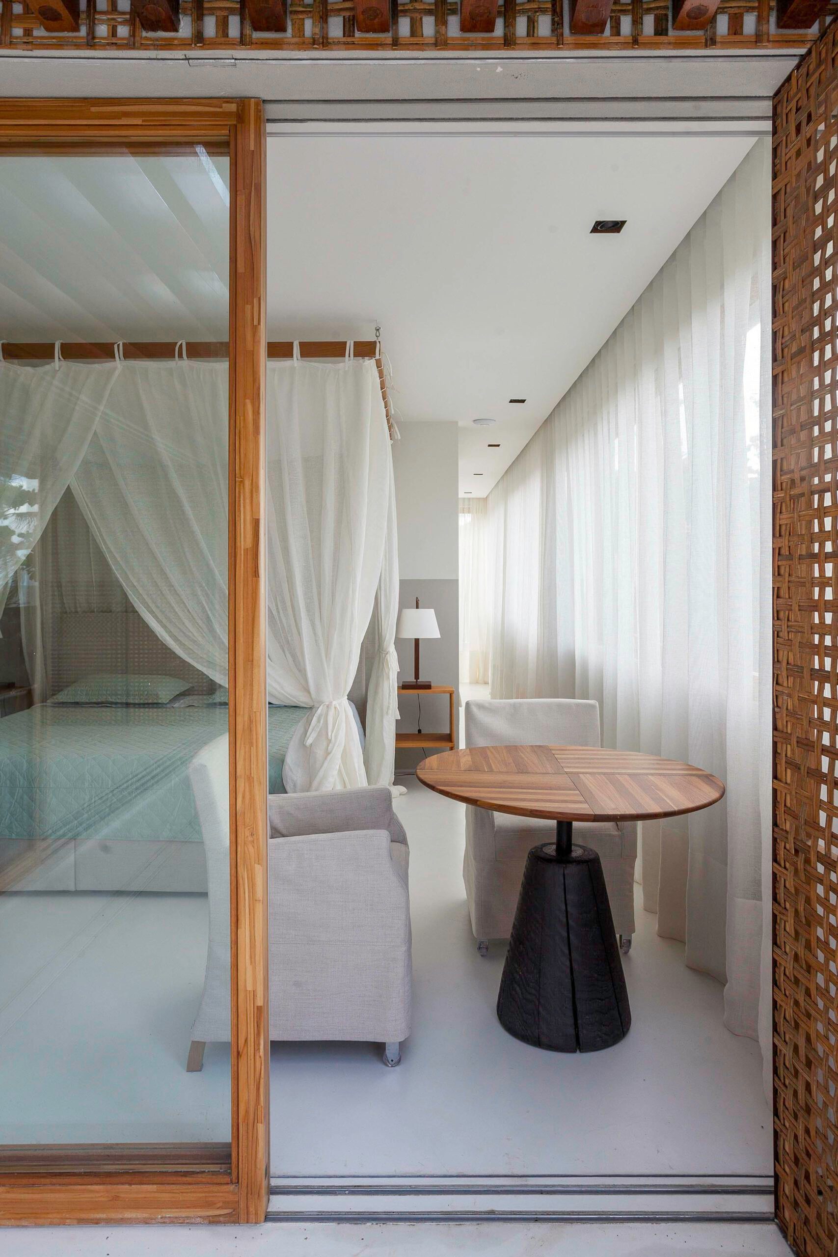 As suítes priorizam conforto, com móveis leves e tecidos em fibras naturais.