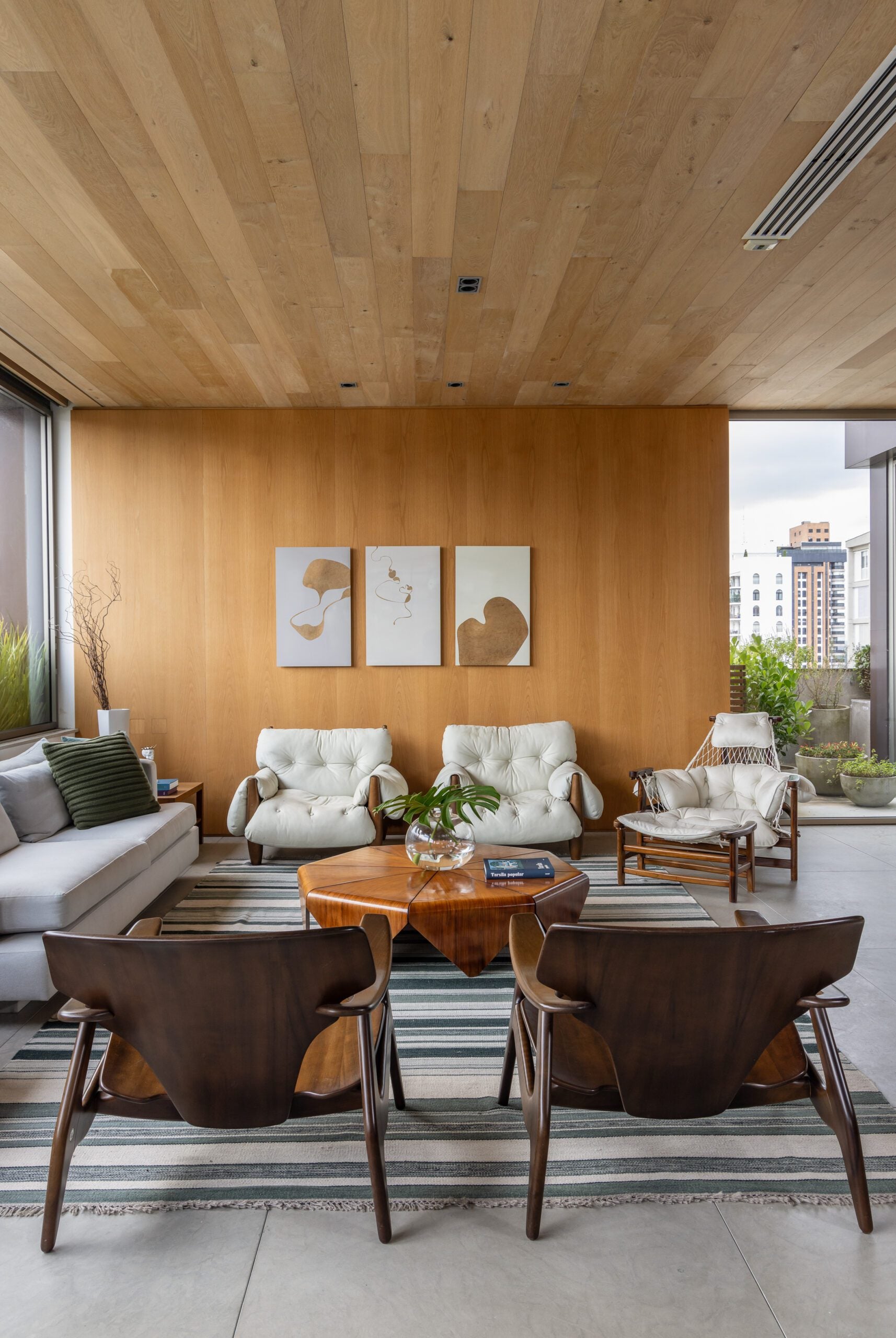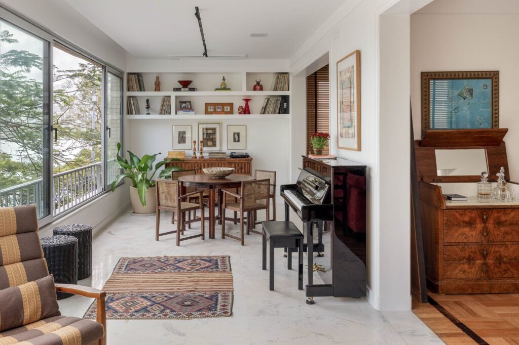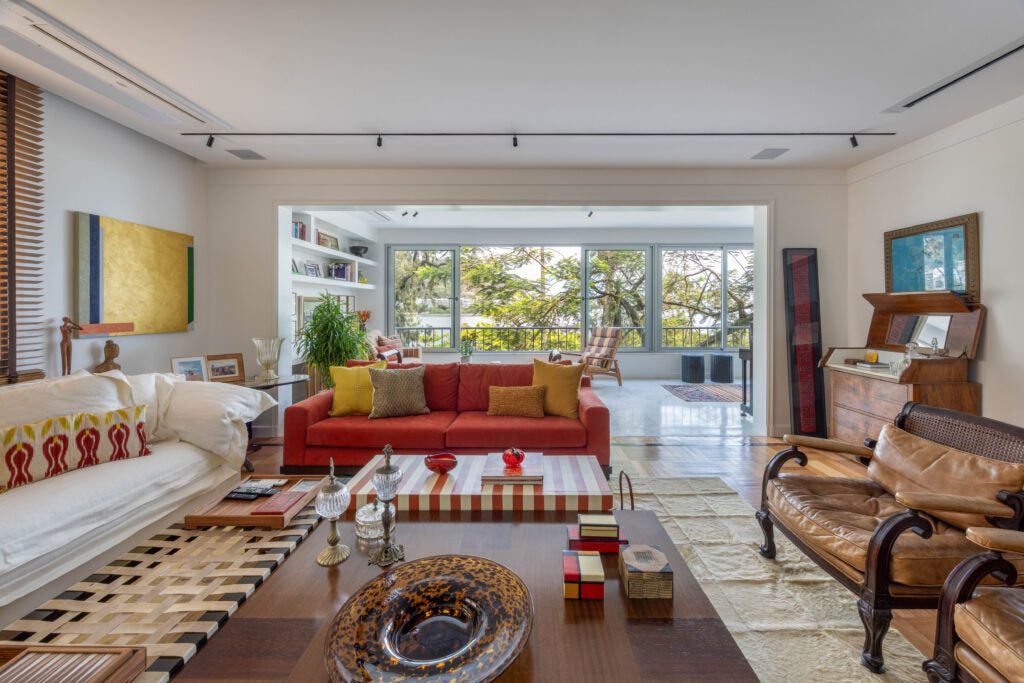 O apartamento é novo, mas a história que ele abriga vem de longe. Adquirido para uma fase de vida mais simples e prática, o imóvel de 320 m² na Lagoa marca a mudança da família de uma casa de 1.500 m² na Gávea para um endereço mais compacto, sem abrir mão de conforto, identidade e afeto. O novo lar nasce, sobretudo, do reaproveitamento de um acervo construído ao longo de décadas, reunindo mobiliário, obras de arte e memórias que atravessam o tempo.