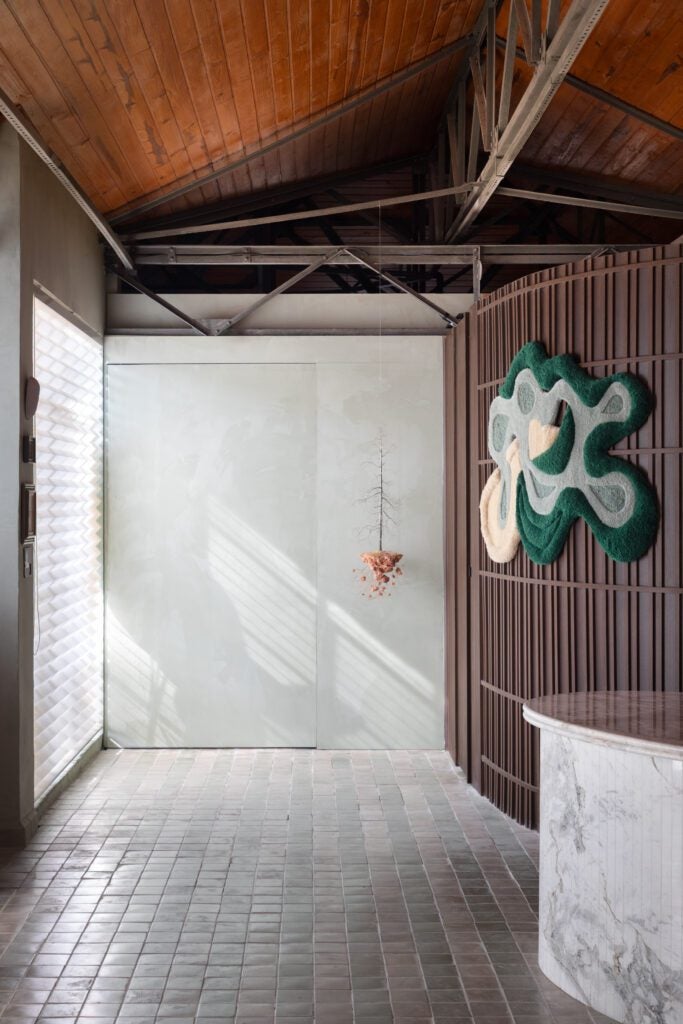 Sob o mote Semear Sonhos, a 38ª edição da mostra acontece no Parque da Água Branca — patrimônio histórico e verde da cidade de São Paulo. Foi a partir dessa conexão com o território que Gleuse se inspirou para criar a bilheteria. “O primeiro ambiente da CASACOR precisa traduzir as ideias que o evento propõe discutir. Meu desafio foi materializar isso com autenticidade e personalidade”, conta.