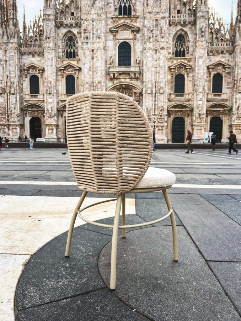 A designer Marta Manente em collab com Modalle Móveis ampliou a coleção Perlage com o balanço e a cadeira, peças com design orgânico e traços fluidos, elaboradas a partir de materiais náuticos de alta resistência.