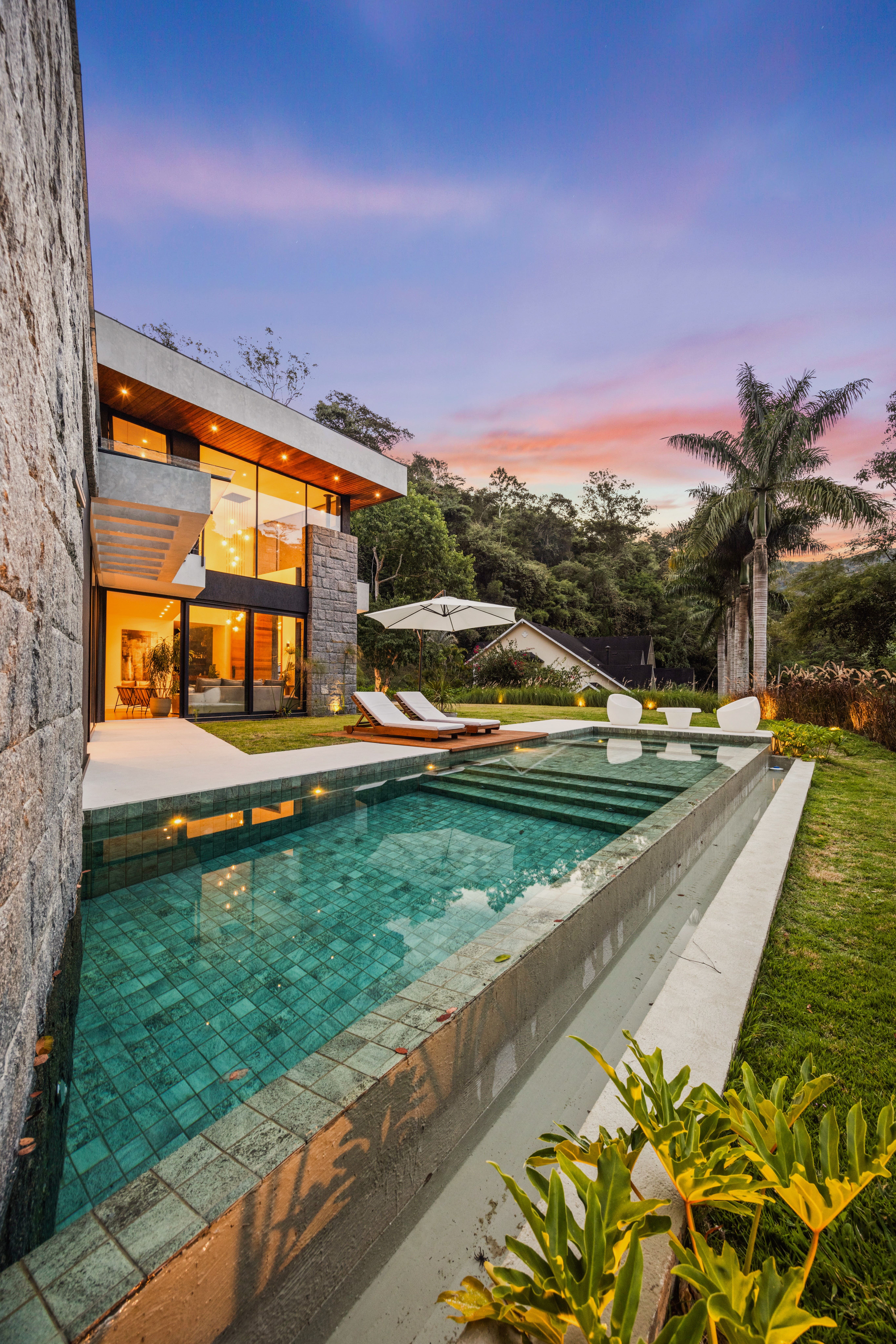 A Naturhaus, ou Casa Natureza, nasce como um gesto arquitetônico que desafia a rigidez da ortogonalidade tradicional ao rotacionar seu eixo principal em 20°. Mais do que uma escolha formal, essa decisão estabelece uma identidade projetual precisa, onde geometria e intenção caminham juntas. Inserida em um terreno marcado pela presença intensa do verde, a residência propõe um diálogo direto entre arquitetura contemporânea e paisagem, equilibrando expressão estética e responsabilidade ambiental.