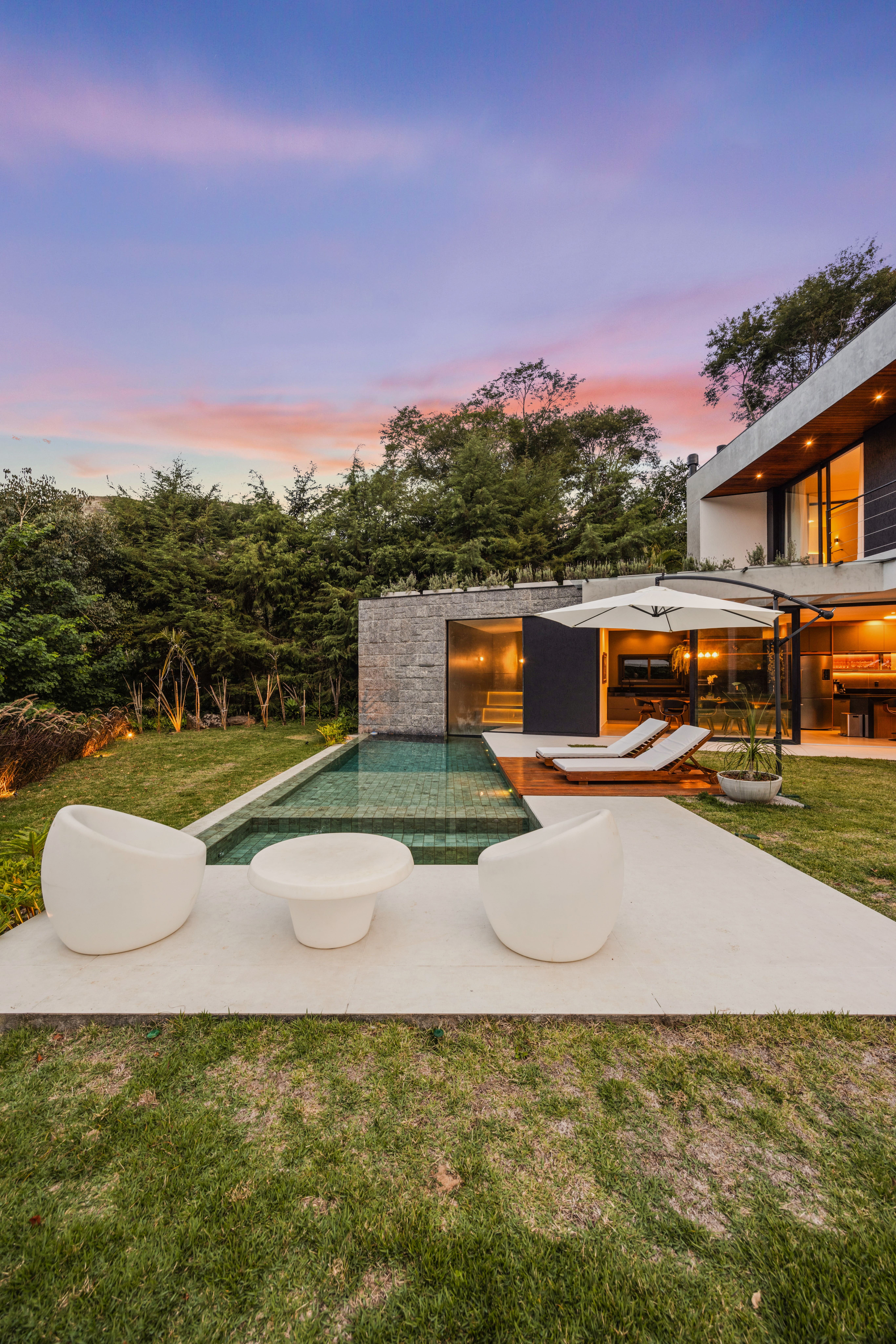 Na Naturhaus, forma, função e ambiente se alinham com precisão. Como define o arquiteto André Daister, a rotação do eixo principal não apenas otimiza o terreno, mas constrói uma identidade única, onde cada decisão projeta uma maneira mais consciente de habitar.