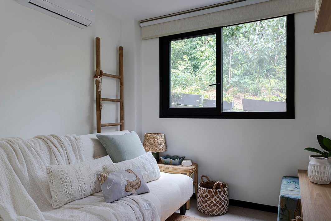 A sala foi integrada à varanda, que recebeu cortinas de vidro para facilitar a limpeza.