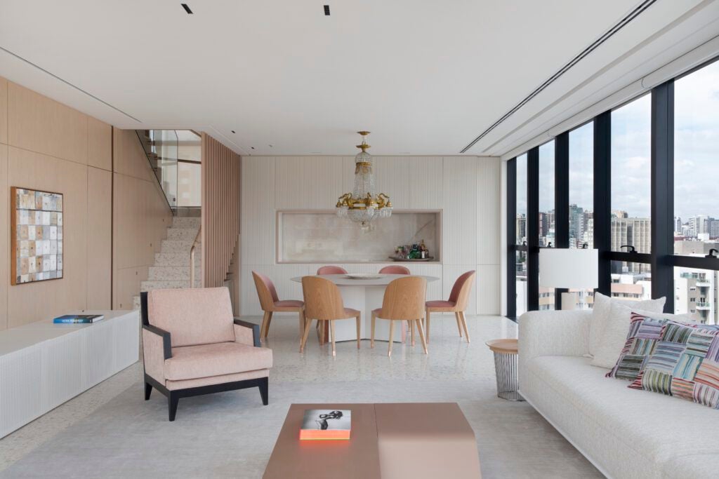 No bairro Bigorrilho, em Curitiba, o arquiteto Jayme Bernardo assina o projeto de interiores de uma cobertura de 360 m² que combina leveza, tons rosados e uma elegância atemporal. A residência reflete a personalidade delicada da moradora e sua busca por uma atmosfera contemporânea, mesmo na transição para um espaço mais compacto.