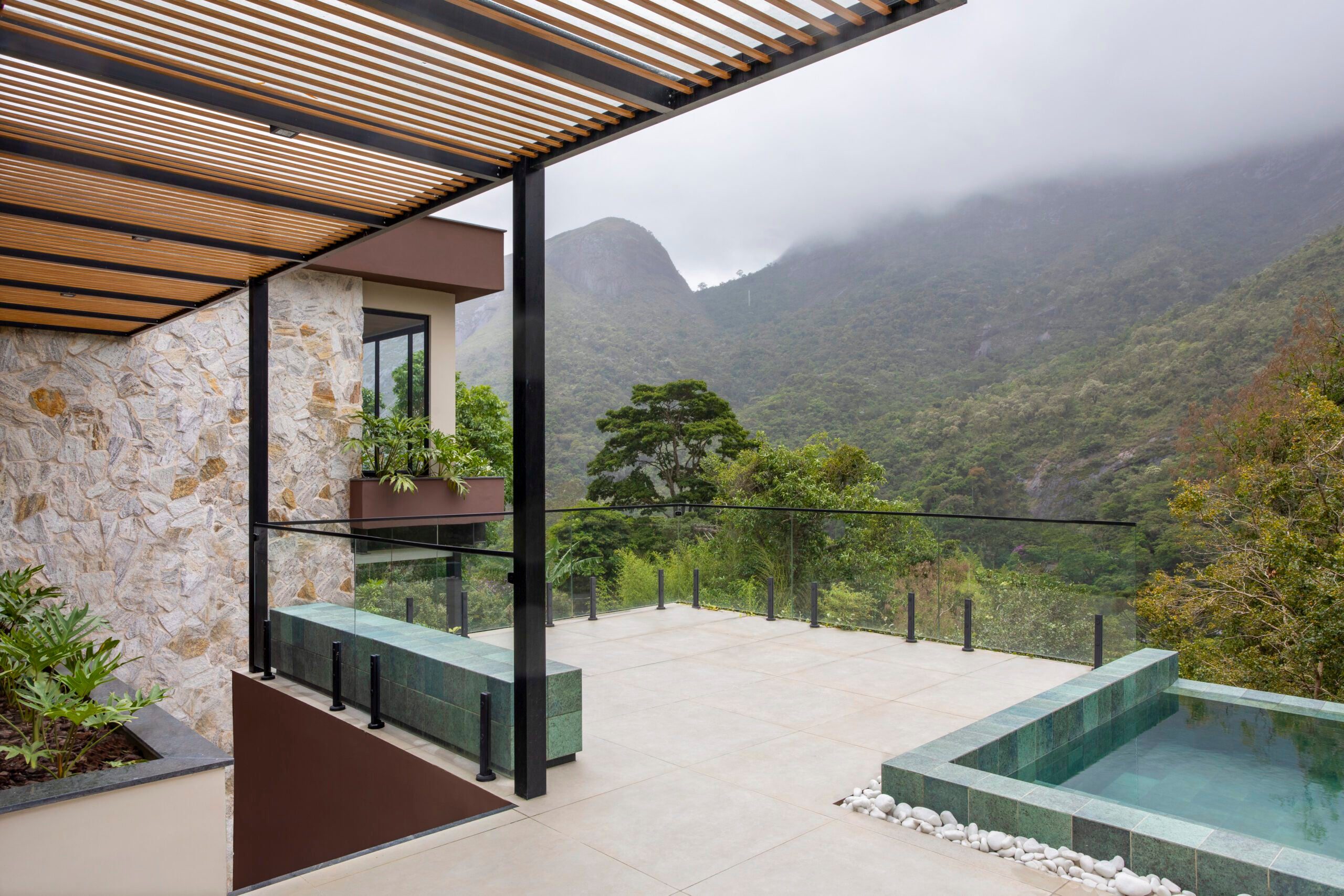 No alto da serra de Itaipava, em um platô privilegiado com vista aberta para as montanhas de Petrópolis, um casal cosmopolita encontrou o cenário perfeito para erguer seu refúgio. Acostumados a viajar pelo mundo em companhia dos dois filhos pequenos, os moradores buscaram ali um ponto de encontro com a natureza, sem abrir mão do conforto contemporâneo.