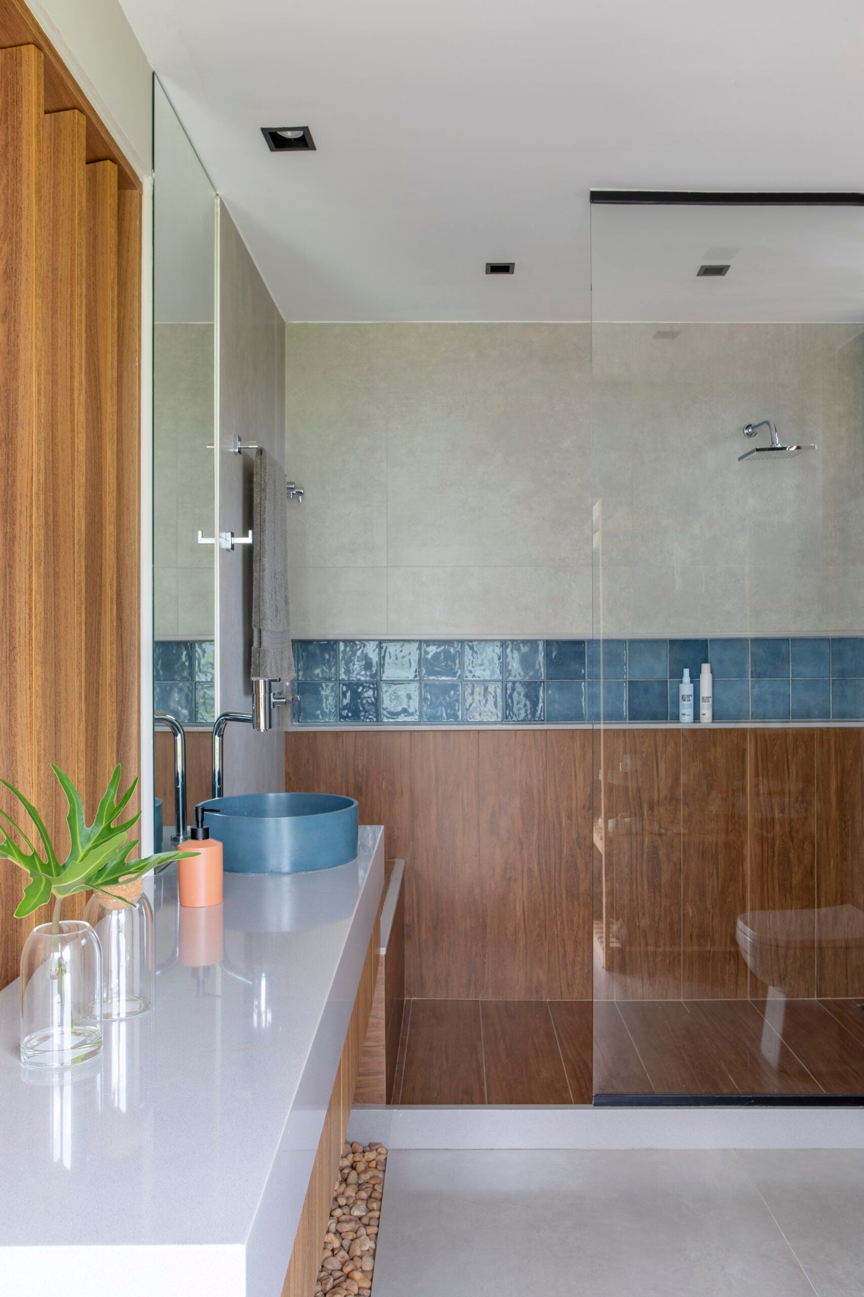 A missão de dar vida a esse desejo ficou a cargo do arquiteto Felipe Rohen, parceiro de longa data da família. Coube a ele transformar uma antiga construção colonial em uma casa atual, luminosa e acolhedora, capaz de abrigar momentos de descanso, encontros afetivos e novas memórias. O resultado é uma residência que equilibra tradição e modernidade, em sintonia com a paisagem exuberante da serra fluminense.
