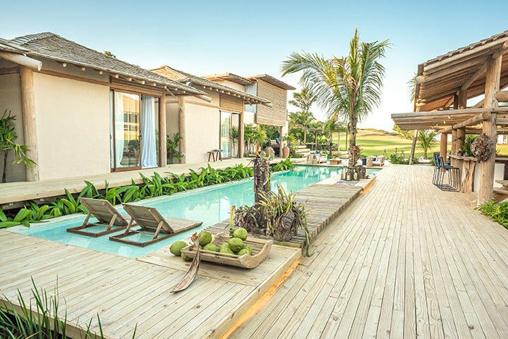 Os decks de madeira criam uma conexão fluida entre os espaços.