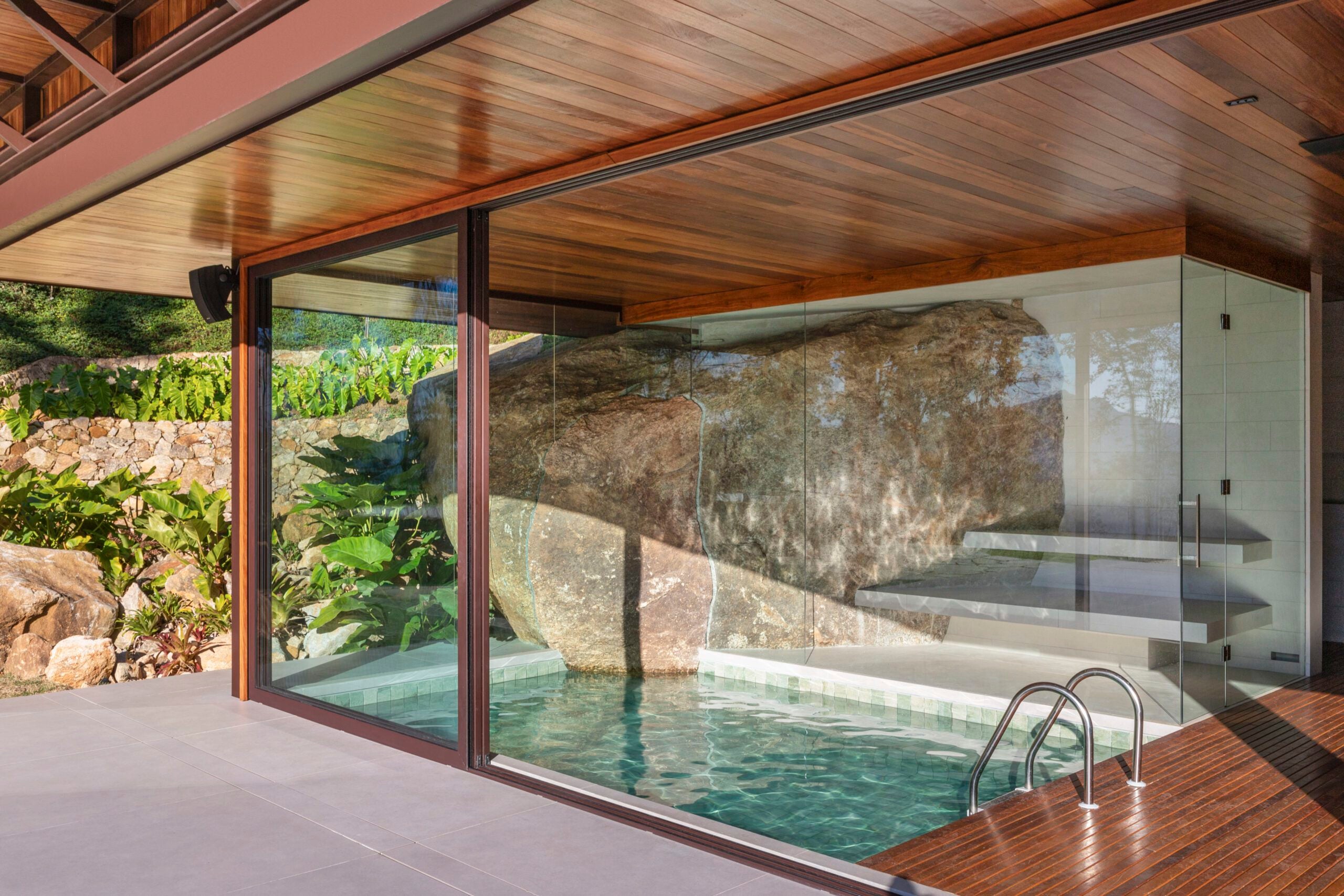 O arquiteto Maurício Magarão explica que o maior desafio do projeto foi implantar uma casa ampla, com um programa bastante extenso, em um terreno íngreme, sem criar grandes desníveis. Segundo ele, era necessário respeitar a topografia e, ao mesmo tempo, atender às necessidades de conforto e integração que os clientes buscavam.