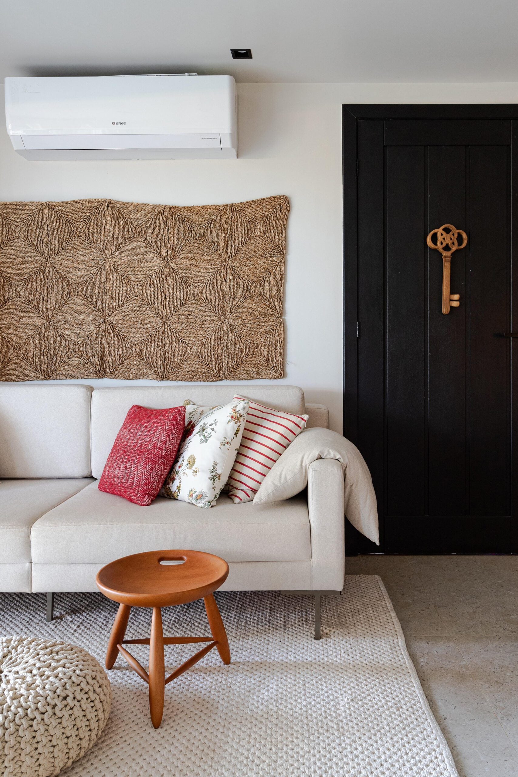 Texturas naturais, como madeira, sisal e tecidos leves, definem o estilo despojado da decoração.