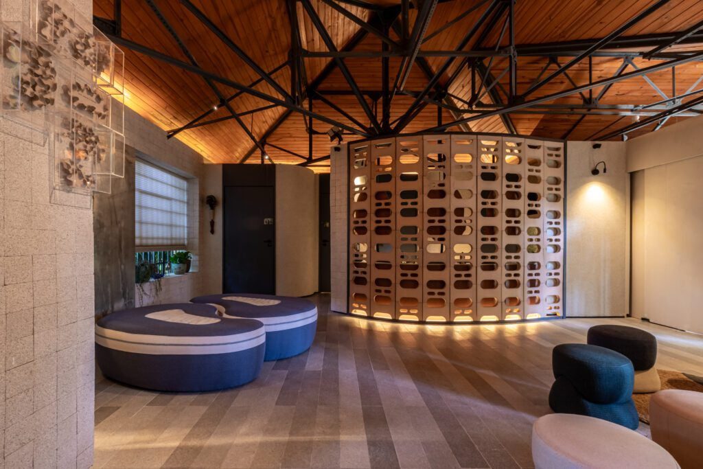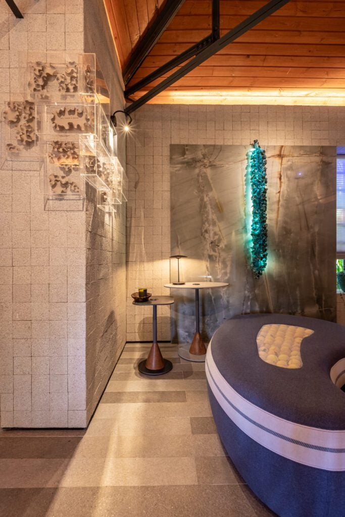 Com 53m² e dividido entre área de estar e quatro cabines, o espaço traduz uma experiência sensorial e afetiva. Inspirado pelo mar, pela cultura manauara e por elementos que tocam a trajetória pessoal da arquiteta, o ambiente se apresenta como uma extensão de sua alma canceriana — apaixonada por água, aconchego e significado.