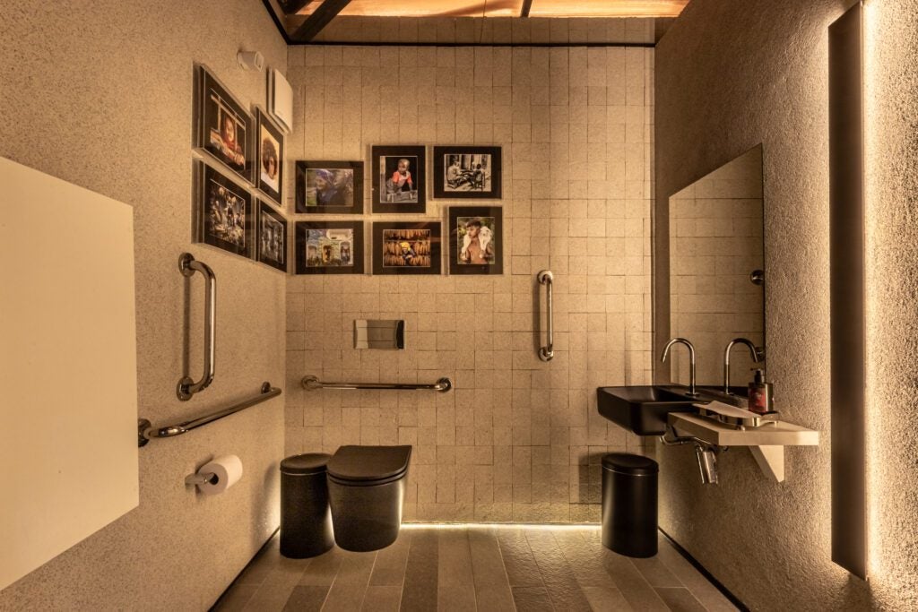 Mais que um banheiro, “Respiro” funciona como um abrigo contemporâneo — com estrutura acessível, soluções sustentáveis (como iluminação em fibra ótica, torneiras econômicas e revestimentos de reuso da Deca) e uma curadoria de peças com propósito. Cada detalhe carrega história: das madeiras reutilizadas das enchentes do Sul aos cliques de Eduardo Toldres, que reverenciam a diversidade e as paisagens do mundo.