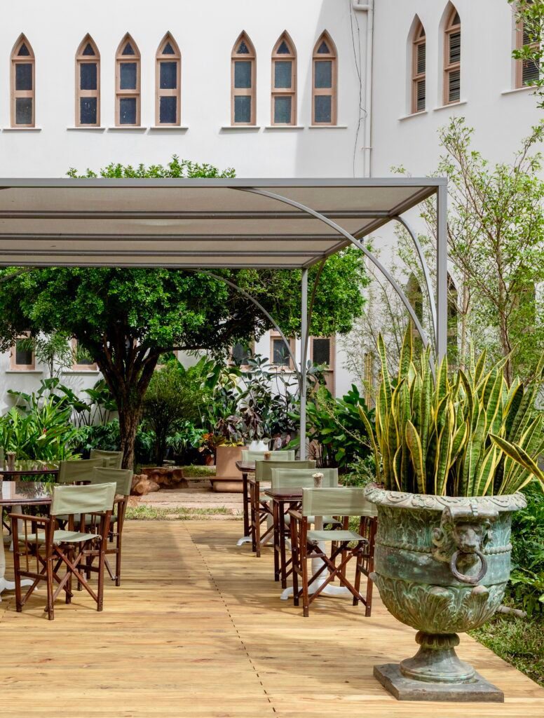Em meio aos arcos e memórias da Casa Nossa Senhora das Mercês, antiga construção neogótica de 1735, o arquiteto David Bastos propõe um restaurante onde o clássico encontra o contemporâneo em perfeita harmonia. O ambiente valoriza os elementos originais da edificação como o piso de ladrilho hidráulico em preto e branco, mantido e restaurado, e os entrelaça a texturas, materiais e soluções modernas com um olhar maximalista e sofisticado.