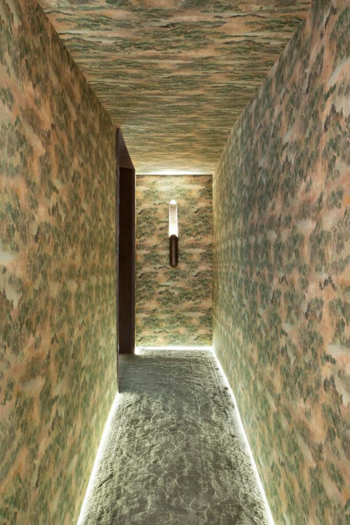 Logo na entrada, paredes e teto revestidos de tecido escuro lembram a mata fechada. O piso em carpete traz a sensação de grama sob os pés. Sons e aromas naturais completam a imersão.