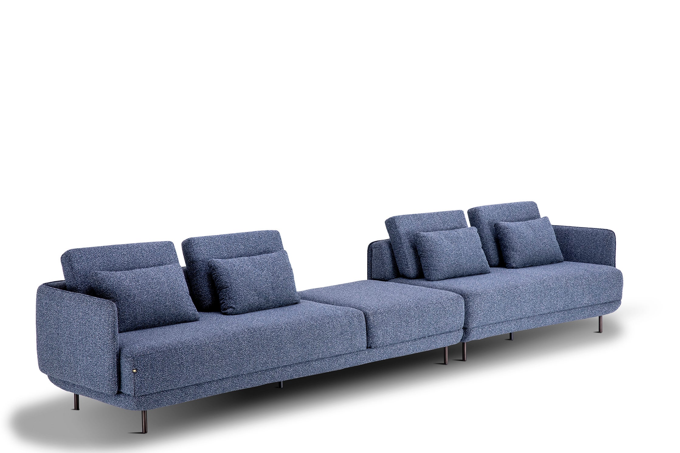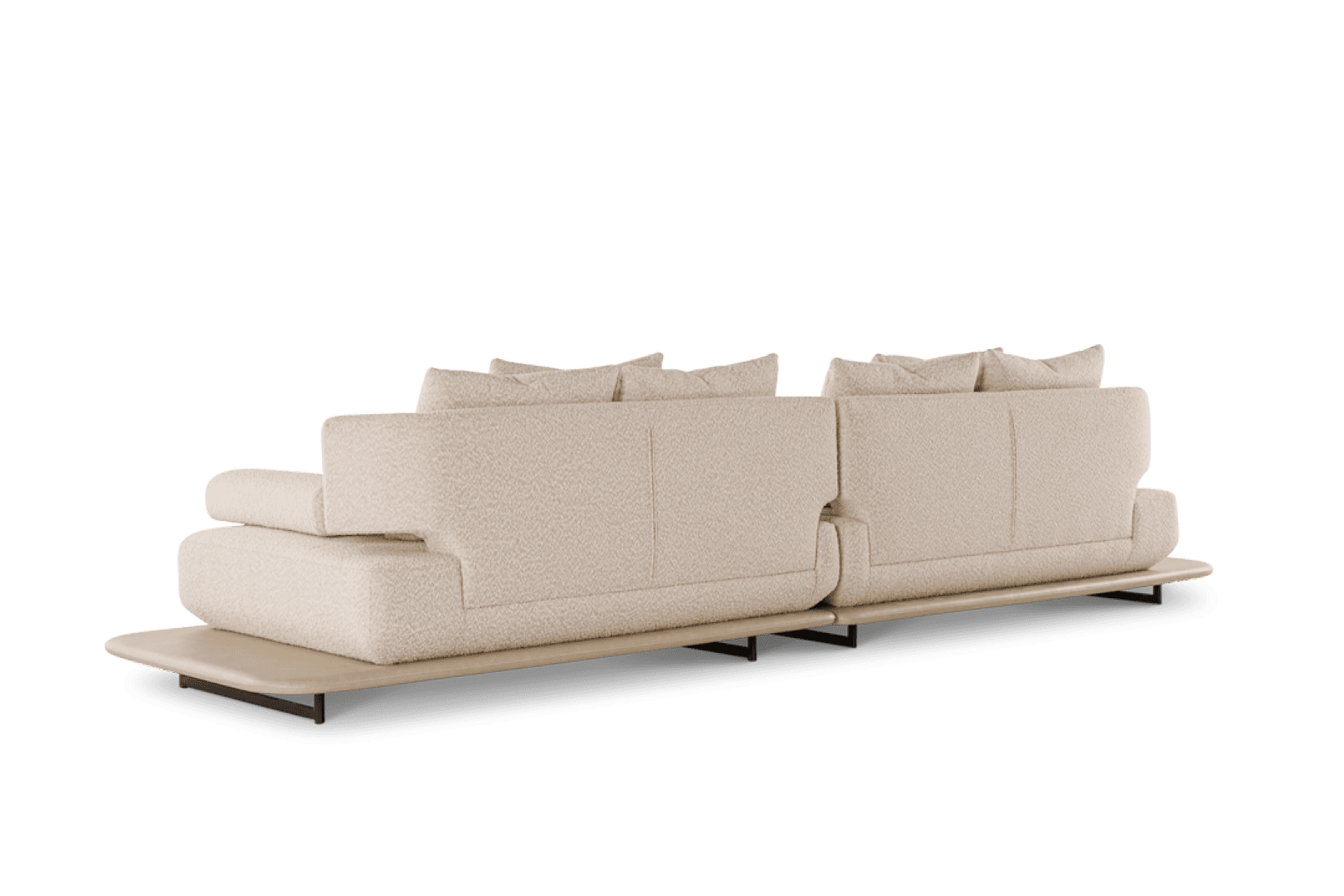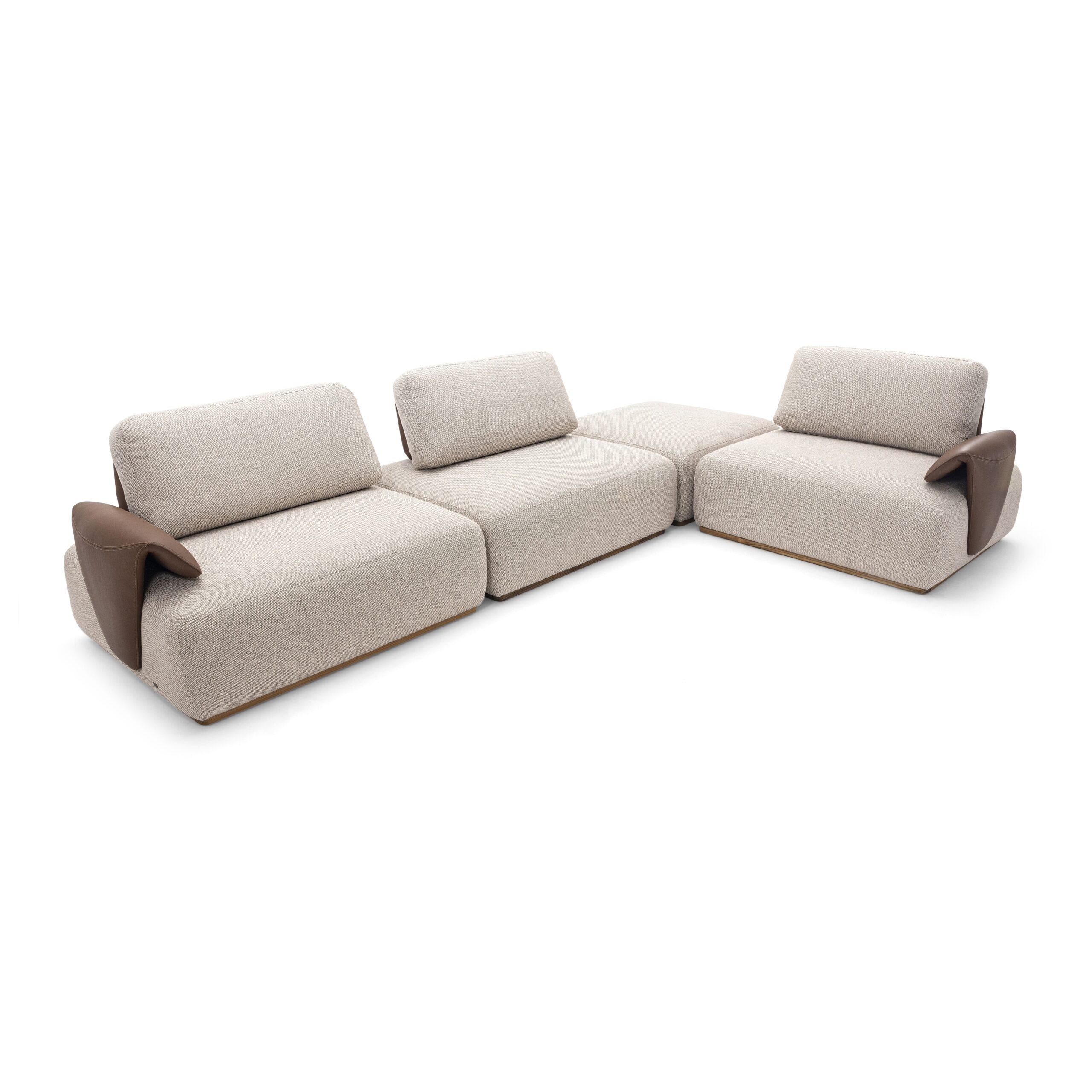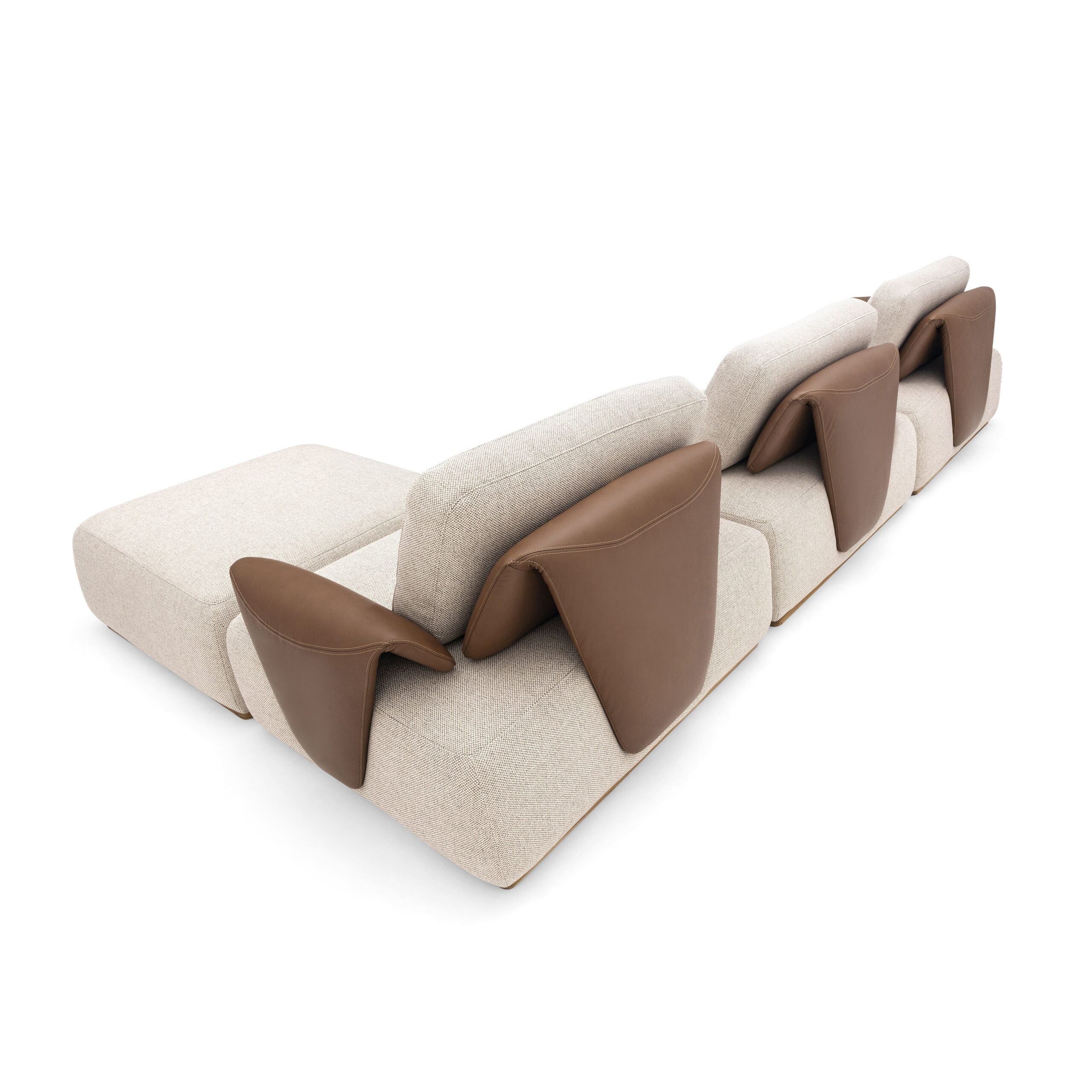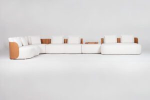 Loris, da Sierra, enfatiza a suavidade das curvas, limpas e marcantes a fim de transmitir a elegância das formas orgânicas e aquecer os ambientes com o uso de materiais como a madeira e couro. Modulado, Loris compõe ambientes de diversos tamanhos e configurações.