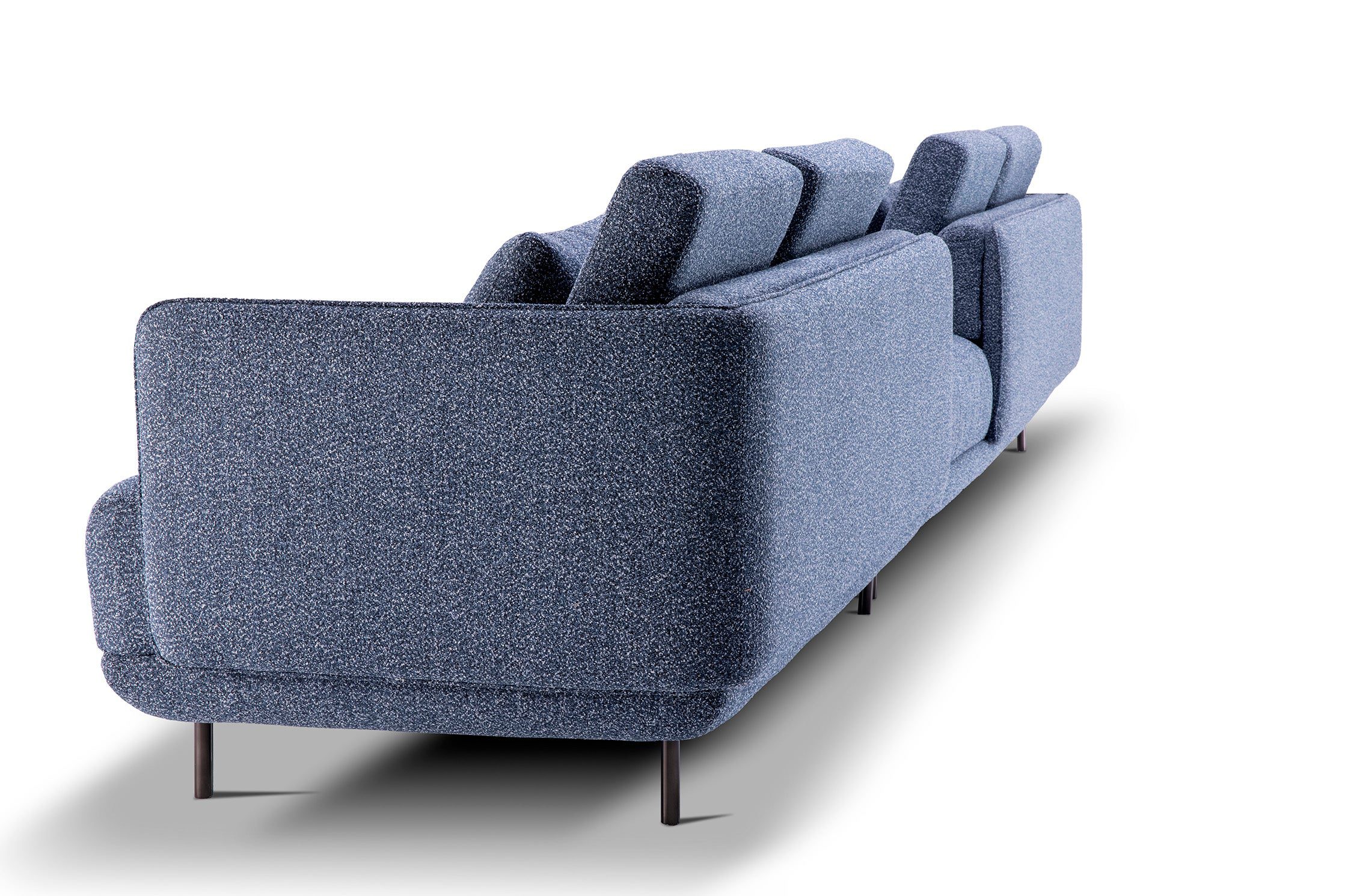 O sofá Wellbe, da Natuzzi, traz design e tecnologia voltada à saúde com a Triple Motion para ajuste individual de apoio de cabeça, pés e lombar, acionado por controle oculto instalado entre o braço e assento do estofado. Além disso, as configurações podem ser personalizadas por aplicativo. O modelo tem assentos amplos, múltiplas configurações e praticidades, como bolso oculto lateral para acomodar pequenos objetos.