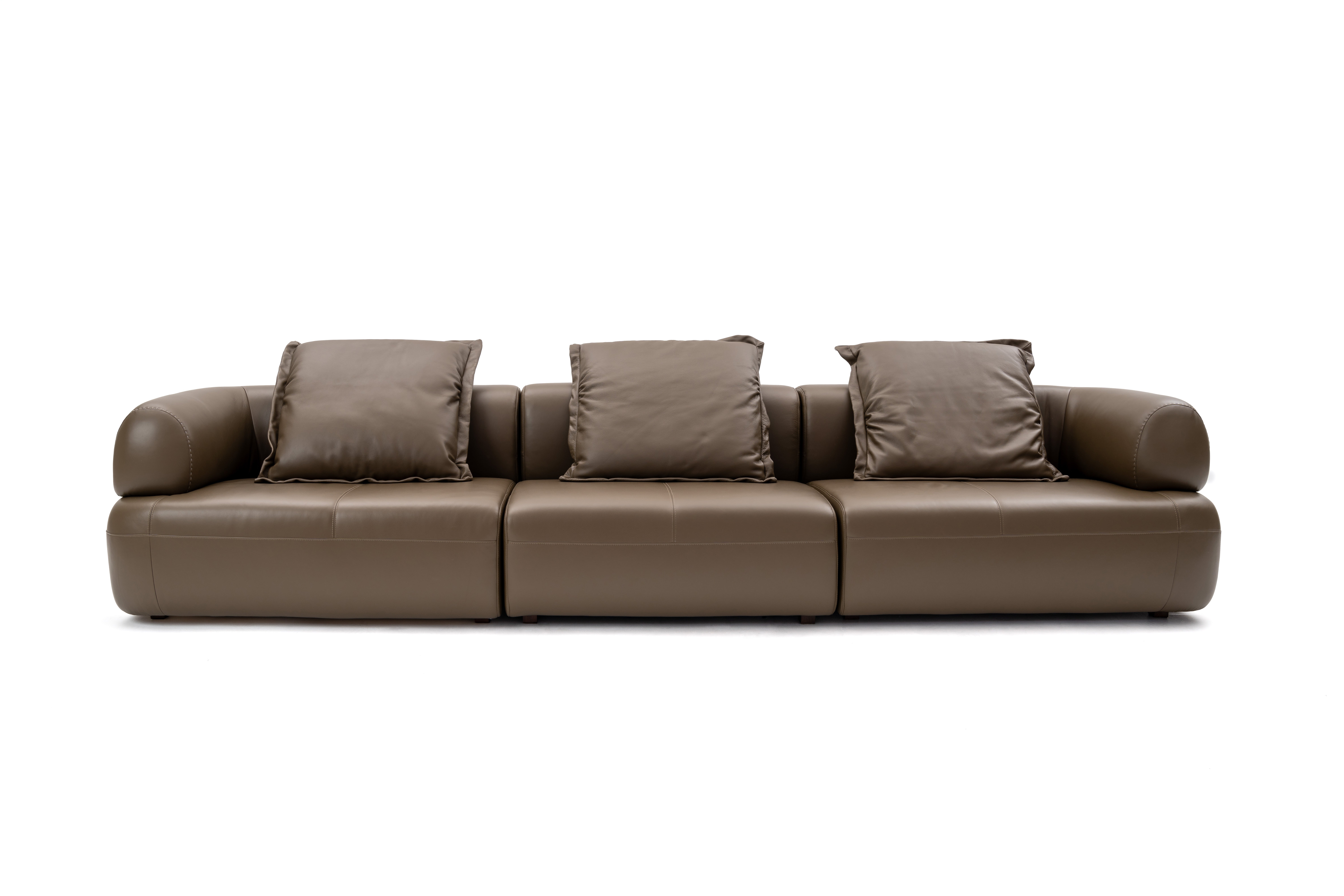 A Arquiteta Daniela Ferro desenhou para a Masotti o Sofá Astral que dispõe de assentos sobrepostos em um leve tablado revestido em couro que, por vezes, se estende e funciona como uma mesa lateral baixa, revelando os detalhes do encosto sutilmente curvo. Os braços soltos conferem dinamismo e possibilitam diferentes posições e layouts, graças às diversas modulações disponíveis.