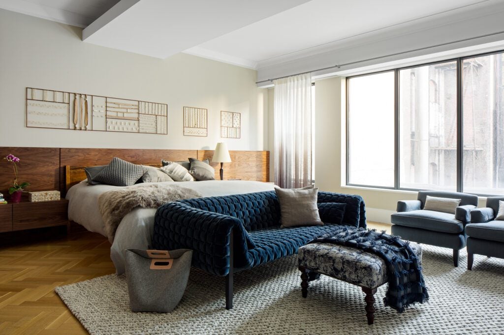 O uso de materiais como madeira e veludo adiciona aconchego aos ambientes, garantindo um equilíbrio entre sofisticação e conforto.