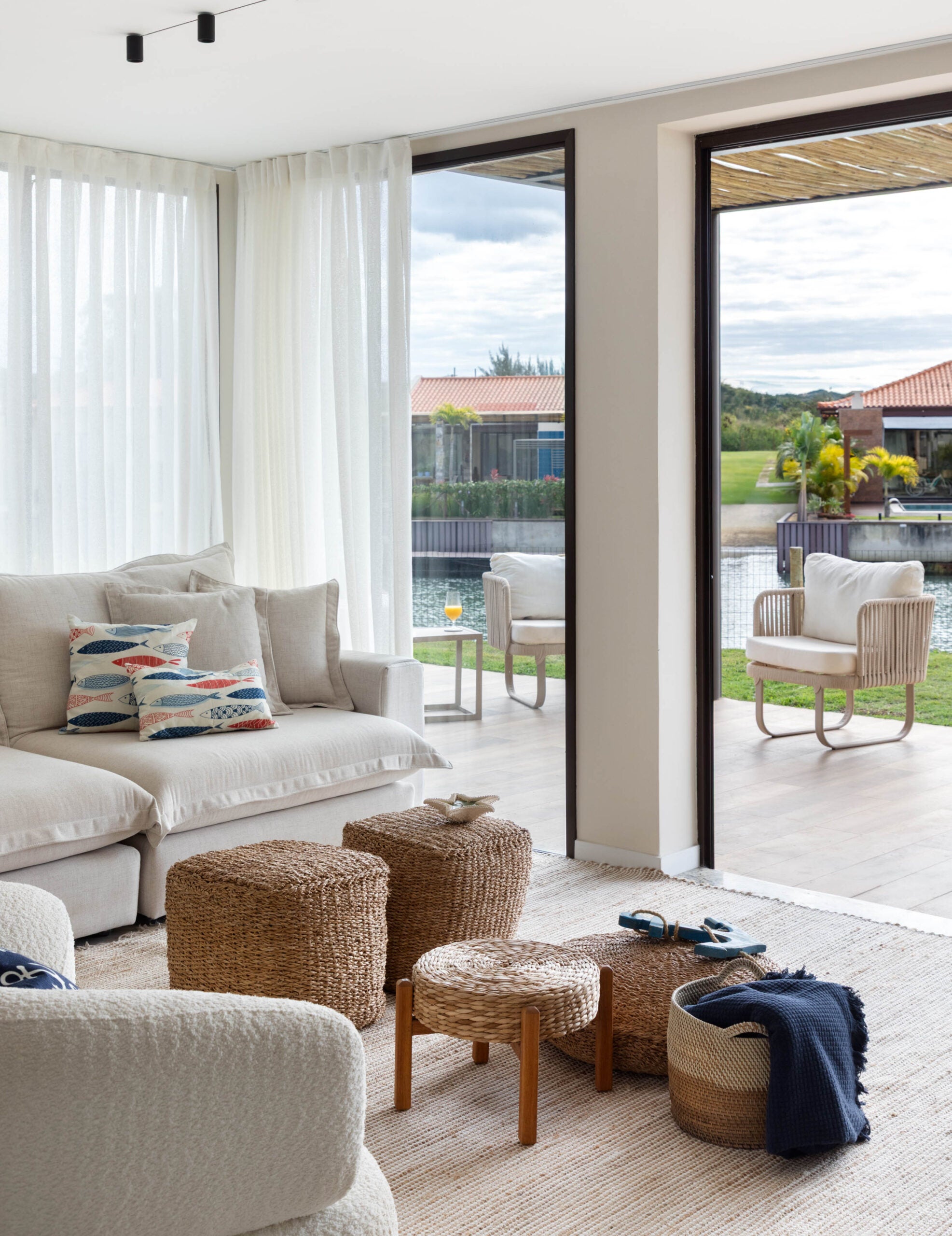 Assinada pela arquiteta Amanda Miranda, à frente do escritório Amanda Miranda Arquitetura (@amandamirandaarquitetura), esta casa de praia de 270 m², distribuída em dois pavimentos, passou por uma renovação completa de interiores para se alinhar ao estilo de vida de uma família que vive a casa intensamente. Localizada em um condomínio fechado em Búzios (RJ), a residência ocupa um terreno de 600 m² às margens do Canal do Aretê, onde a lancha da família permanece ancorada, reforçando sua vocação náutica e o espírito leve que define a região.