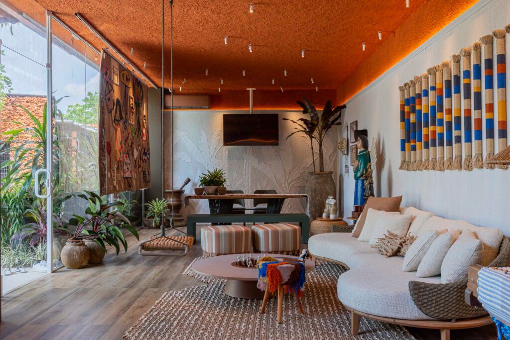 Aqui, o olhar desacelera e percebe o detalhe. A luz, filtrada por materiais naturais, reforça a sensação de abrigo. Mais que cenário, é uma declaração de amor à cultura local, às mãos que criam e à ideia de um morar mais gentil.