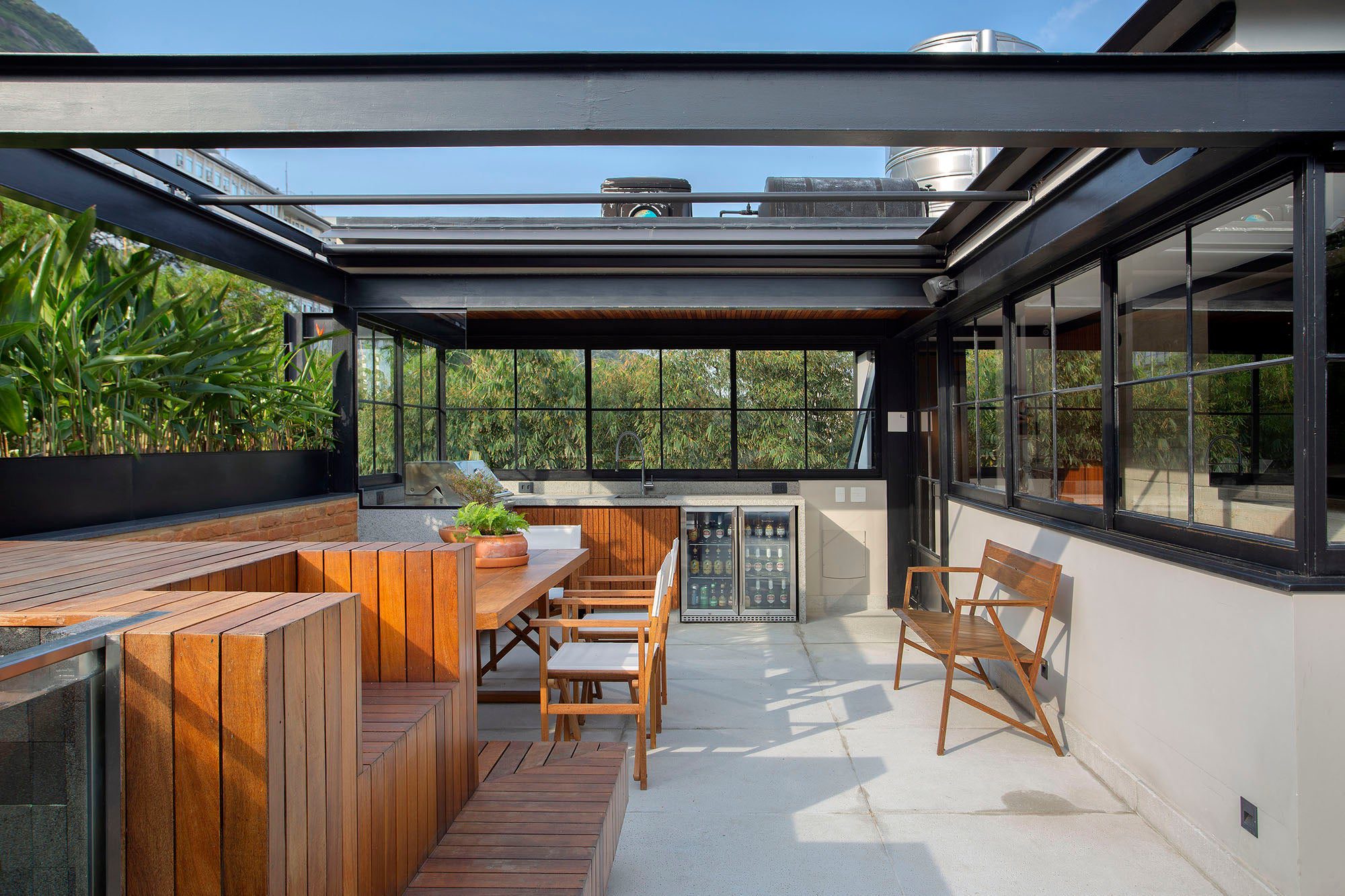 Com vista para o entorno da vila, o rooftop foi pensado como um refúgio para relaxar, receber amigos e aproveitar os dias de sol.